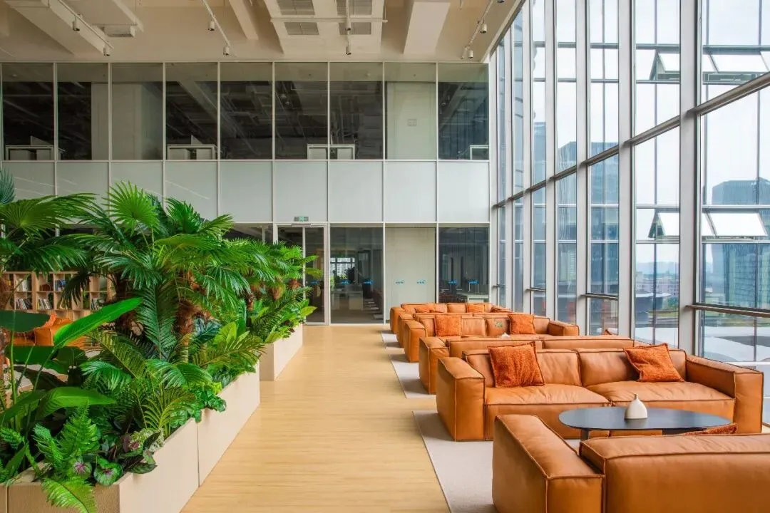 在建筑设计上,结合乐高式模块化设计,实现了功能多样化组合和变化的需求。共享中庭的设计则进一步强化了办公与休闲功能的融合,使员工能够在自然景观与公共文化体验中自由流动。