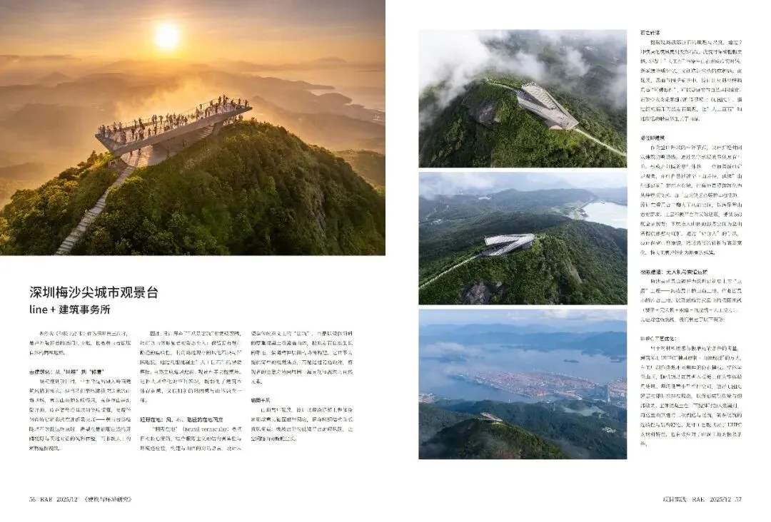2025年3月14日,深圳第三高峰梅沙尖(海拔753米)迎来标志性时刻——由line+联合创始人、主持建筑师孟凡浩率团队设计的梅沙尖观景台正式对外开放(试运营)。主持建筑师孟凡浩陪同深圳市盐田区委书记李忠,区委副书记、区长邓飞波等领导登顶揭幕,共同体验这一“消失”于山巅、与地貌共生的城市新地标。