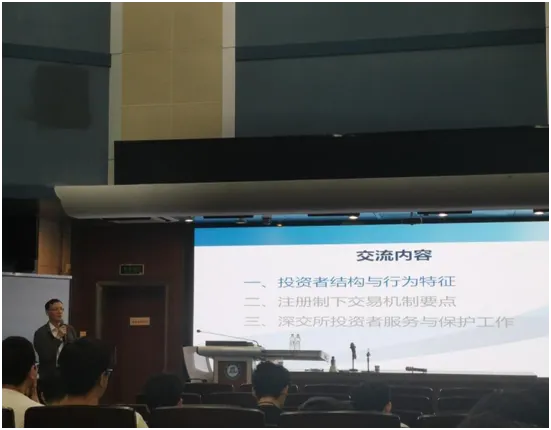 讲座从投资者结构与行为特征、注册制下交易机制要点、深交所投资者服务与保护工作三个部分展开。