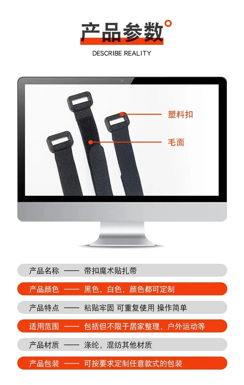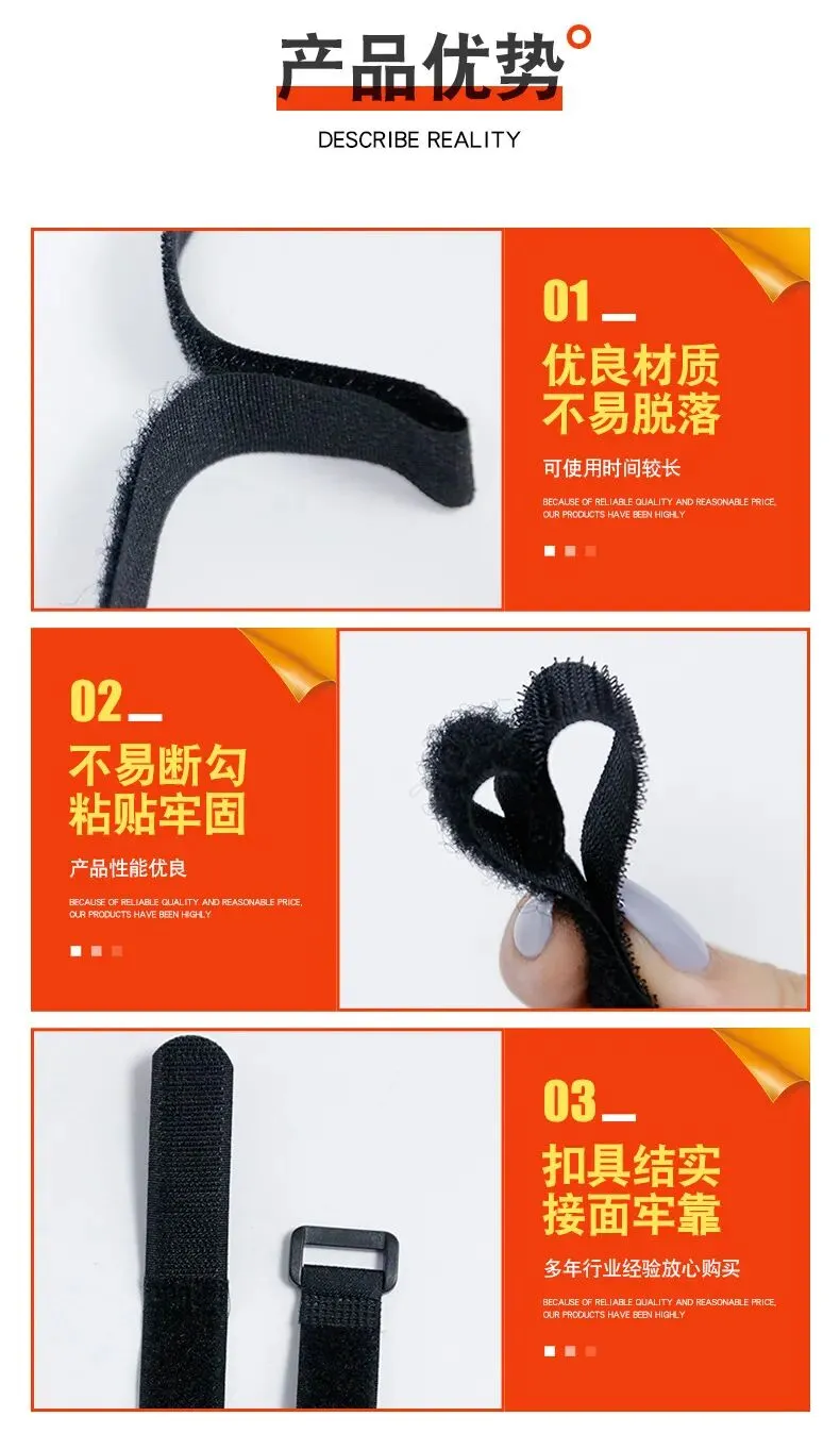 深圳源头工厂订制批发尼龙魔术贴扎带黑色带扣捆绑带松紧粘扣带运动器材绑带魔术贴扎带 魔术贴扣子扎带