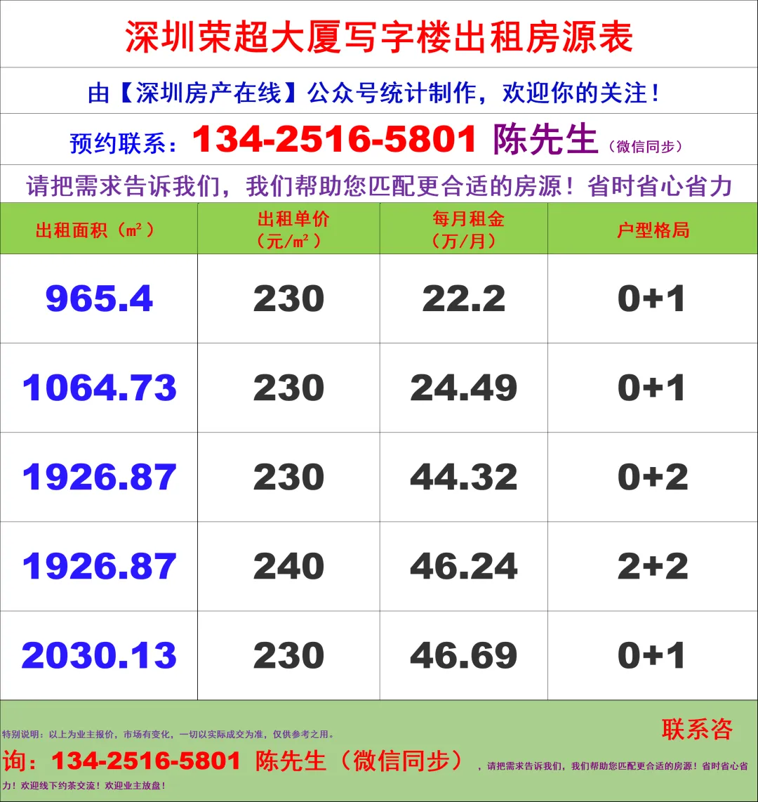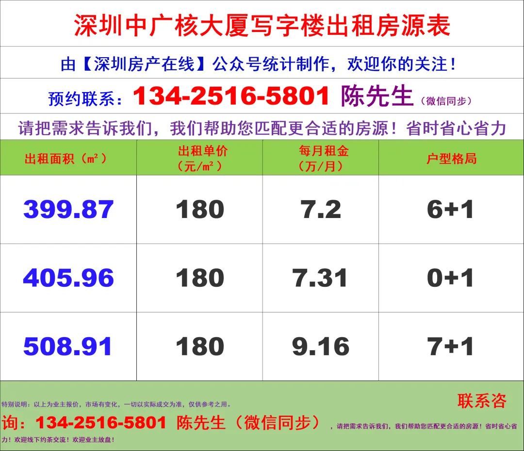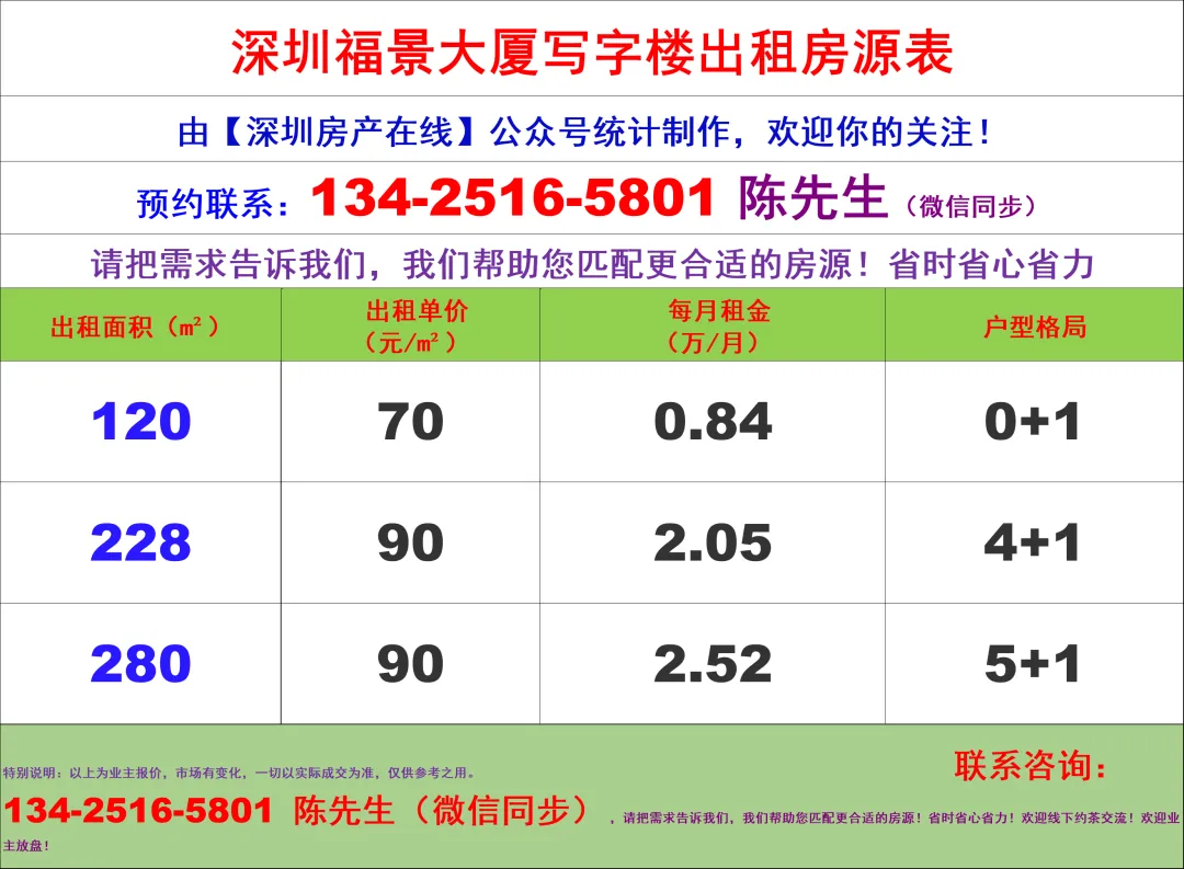 【深圳房产在线】陈经理写字楼租售团队,深耕深圳商办十年,专注福田CBD核心资源(南北区全覆盖),为你提供全链条服务: