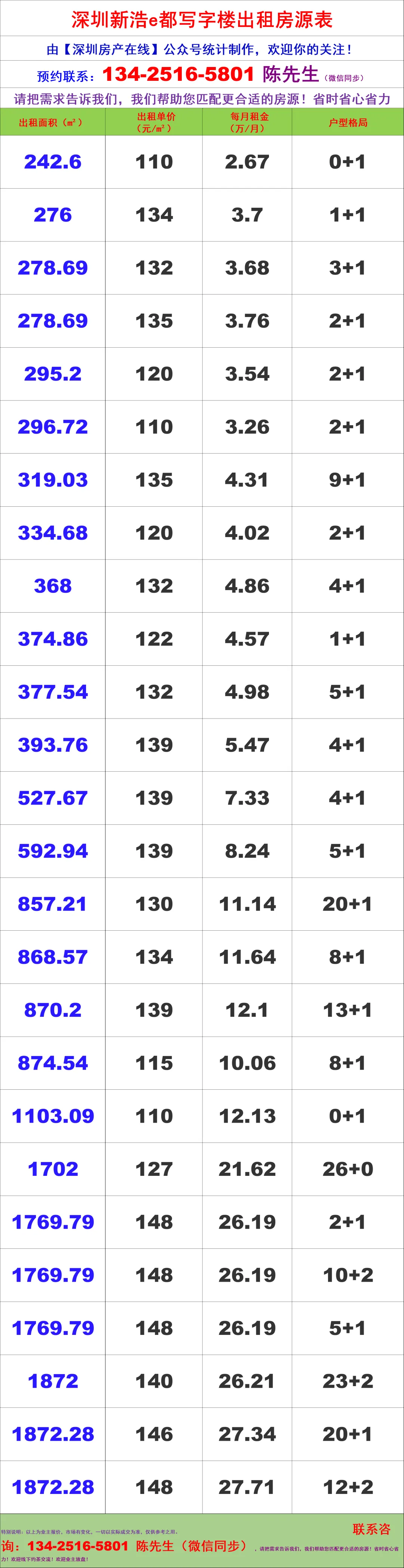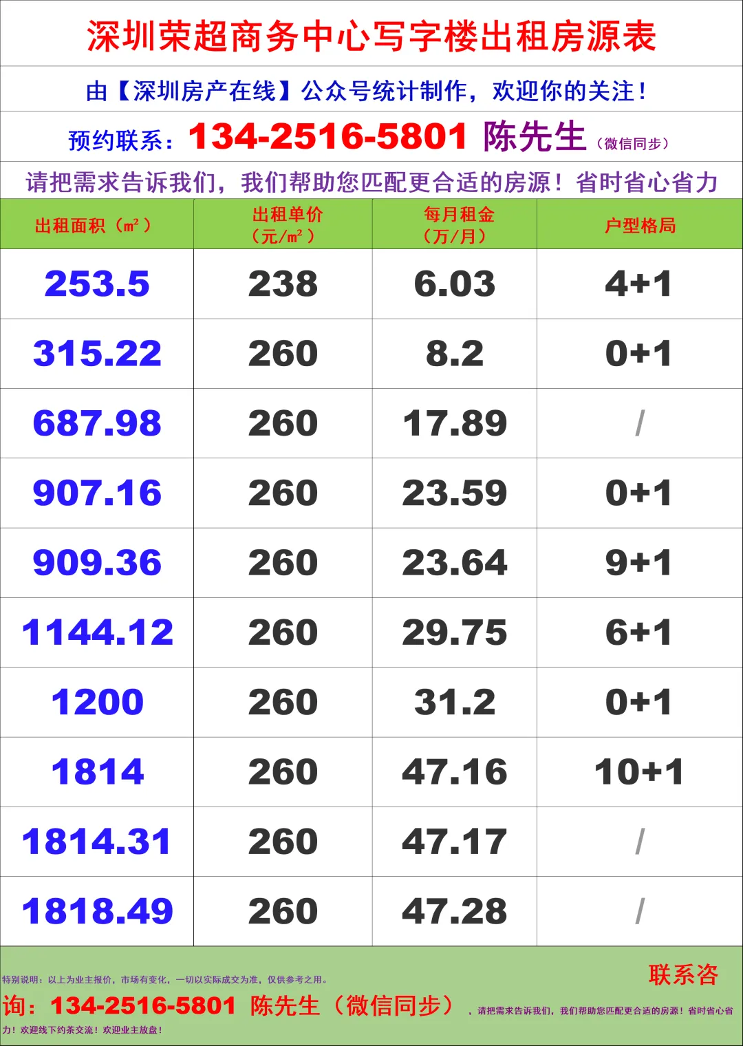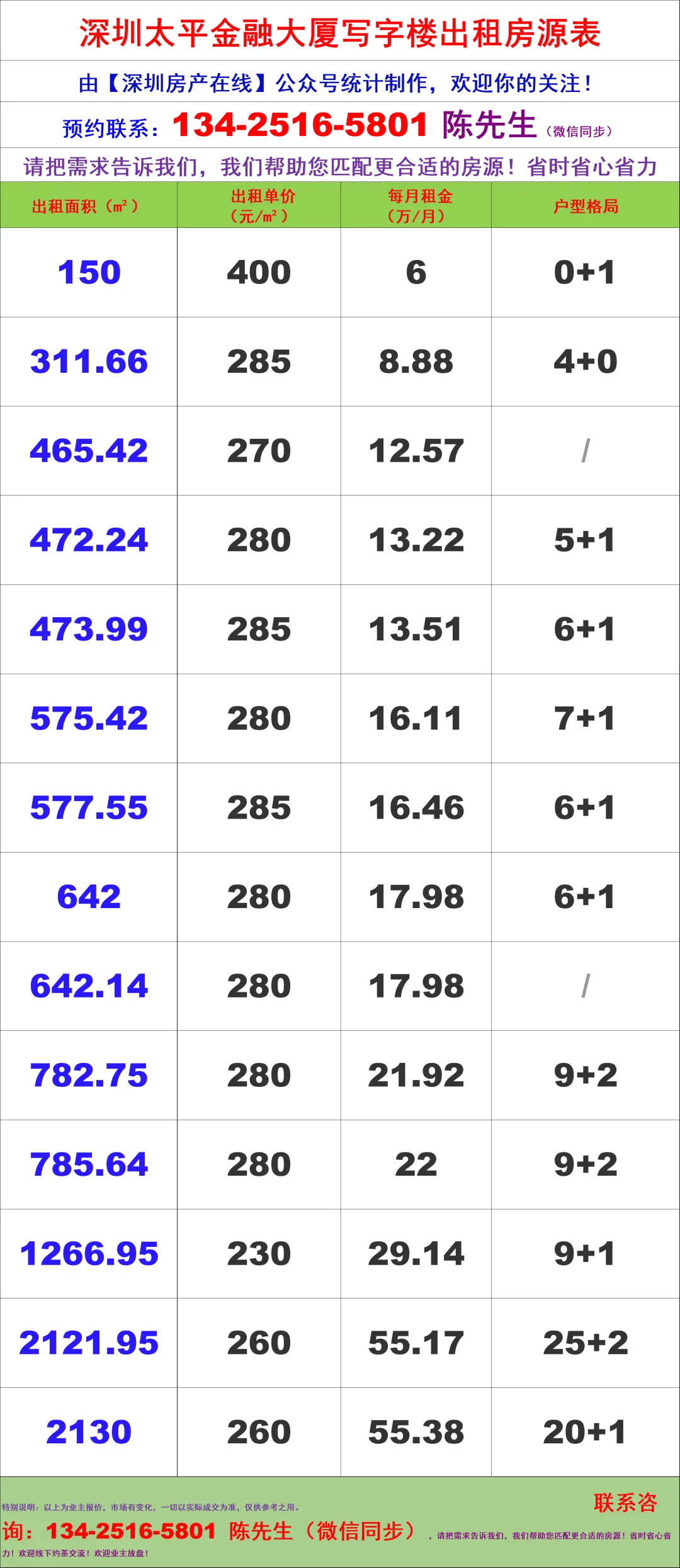 【深圳房产在线】陈经理写字楼租售团队,深耕深圳商办十年,专注福田CBD核心资源(南北区全覆盖),为你提供全链条服务: