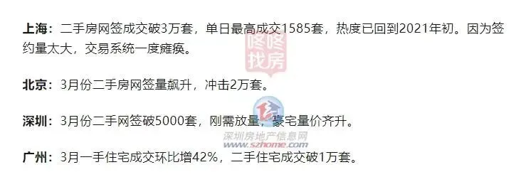 北上广深等一线城市3月份楼市都出现不同程度的回暖
