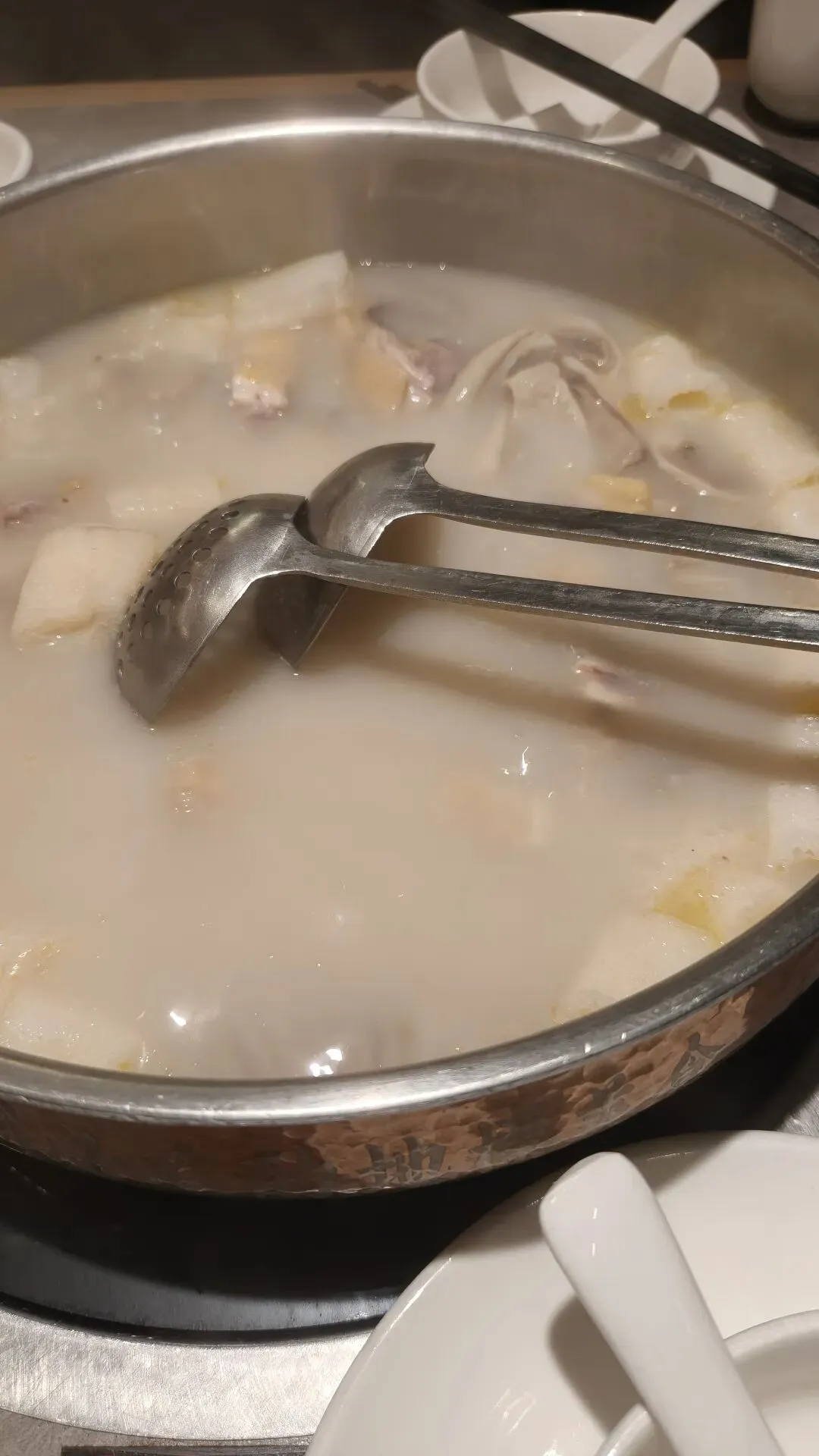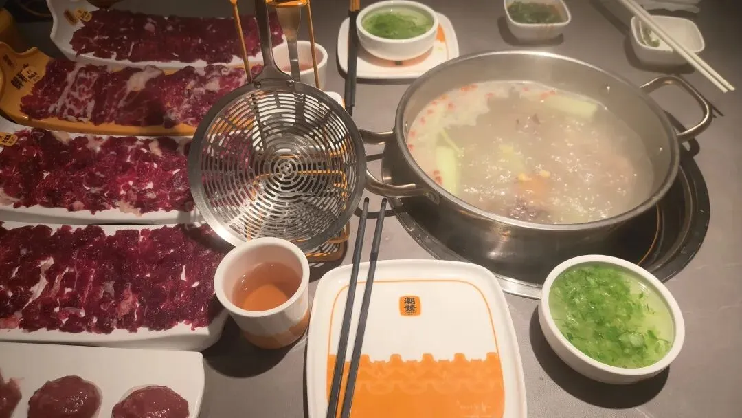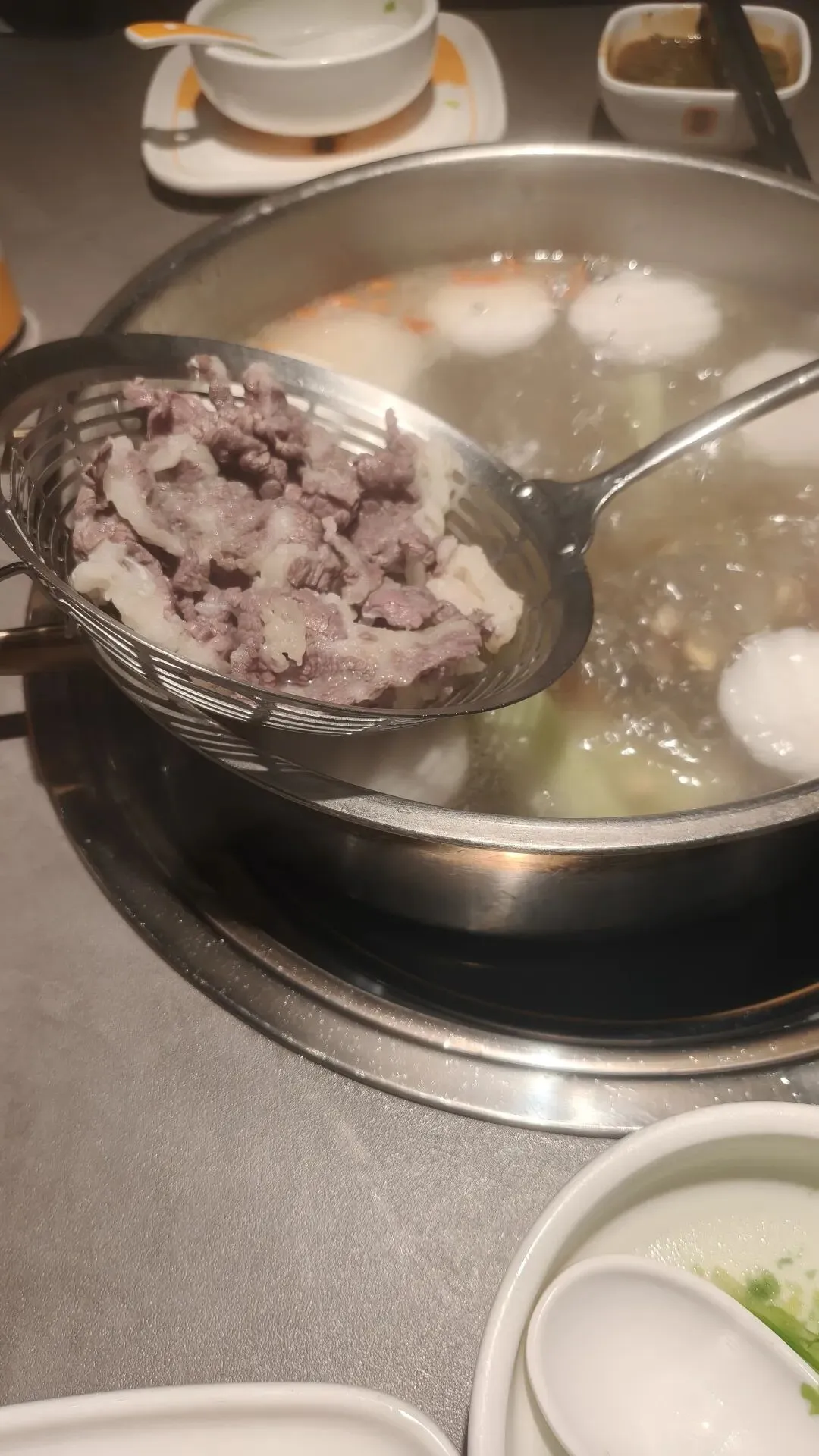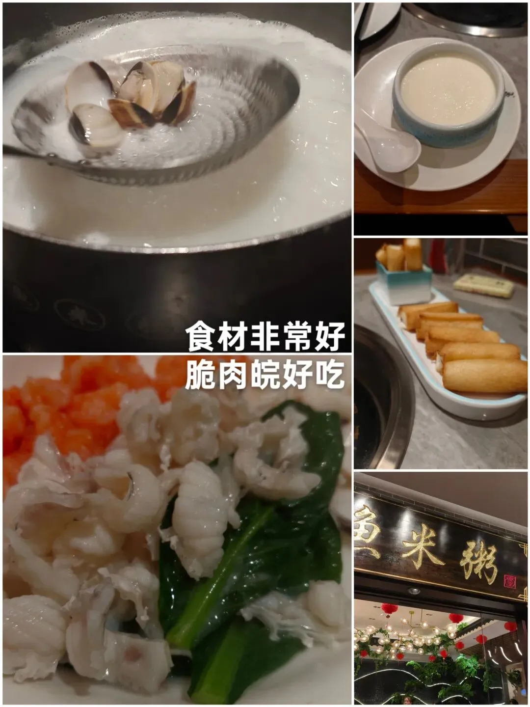 拍完照后我们下楼打车去吃粥底火锅。荃儿轻车熟路点了虾滑,脆肉皖,白贝和肉丸,还有炸牛奶和双皮奶。荃儿对炸牛奶并不满意,因为她吃过更好吃的,我倒是对所有菜都很满意,尤其是虾滑和脆肉皖。虾滑看上去平平无奇,实际上含虾量极高,含淀粉量极低,导致虾滑煮熟了是赤红色的,从来没见过这样的虾滑。脆肉皖是变种草鱼,肉吃起来是脆硬的,还伴随着鱼皮和筋膜,口感特别,味道极其鲜美。荃儿说带我去吃的都是好的贵的,食材确实好,但也是真的贵,只点了这几盘菜就花了进400,实际消费360。周六回家已经是0点以后了,荃儿勒令我别唠了马上洗澡睡觉,我也乖乖去睡了(很奇怪这个人让我做什么我都心甘情愿,她一直有这样的魔力,以自己为中心,他人毫不排斥)。我是2点睡着的,她躺床上一秒就睡,真是为了我来,燃尽自己了。