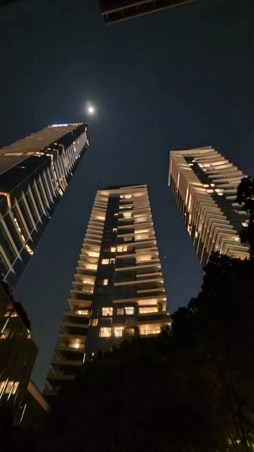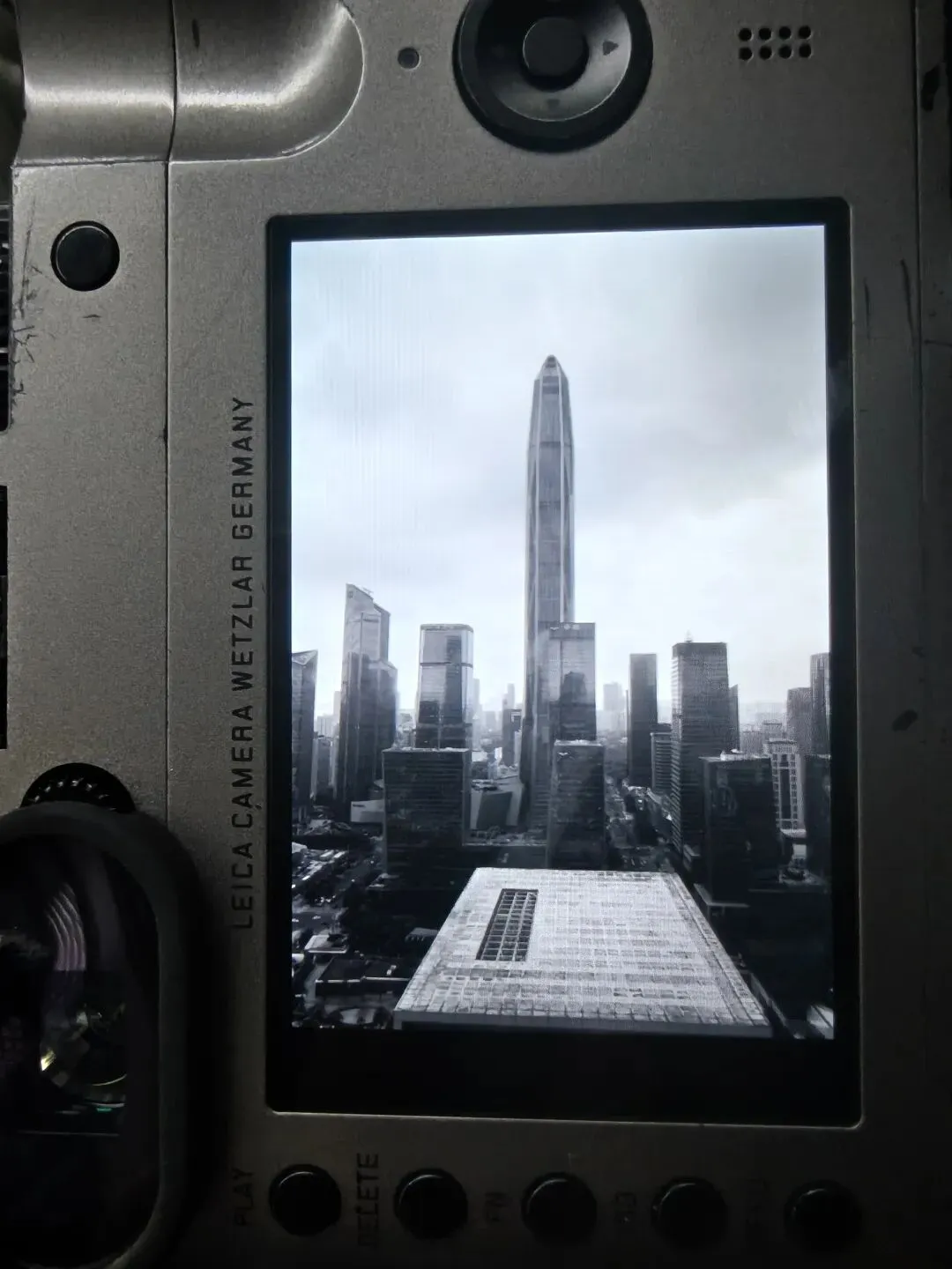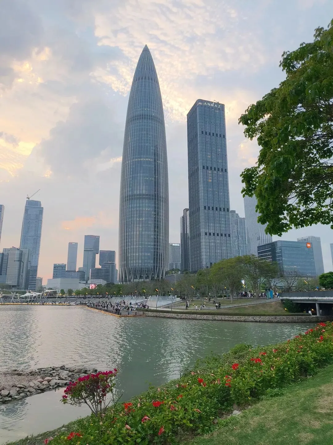 吃完饭范老师就去开会了,我和她一起走到总部楼下,范老师想把我带上去,我怕影响她工作就直接走了。哦对,我还拎着吃剩打包的早茶,就这么逛了一下午一晚上。我先根据范老师给的拍照机位地址,去拍深圳最高的铅笔楼——平安大厦。根据攻略,机位在距离铅笔楼一公里的地方,也是一栋写字楼,38楼有一个开放的平台,可以完美拍到铅笔楼。说实话,个人擅闯写字楼很危险,甚至38楼没有一个电梯停,最后只好上到39楼。一出门就是装修,大着胆子找到安全通道,摸黑下到38楼。这还没完,说好的小阳台没开,本着来都来了的想法找到了38楼的女卫生间,隔着玻璃拍到了铅笔楼,真的很漂亮很壮观。只能说还好女卫生间也是冲着铅笔楼这边的,我看了下男卫生间在另一侧,如果我是男的那就完蛋了,这怎么不算吃到性别红利呢。