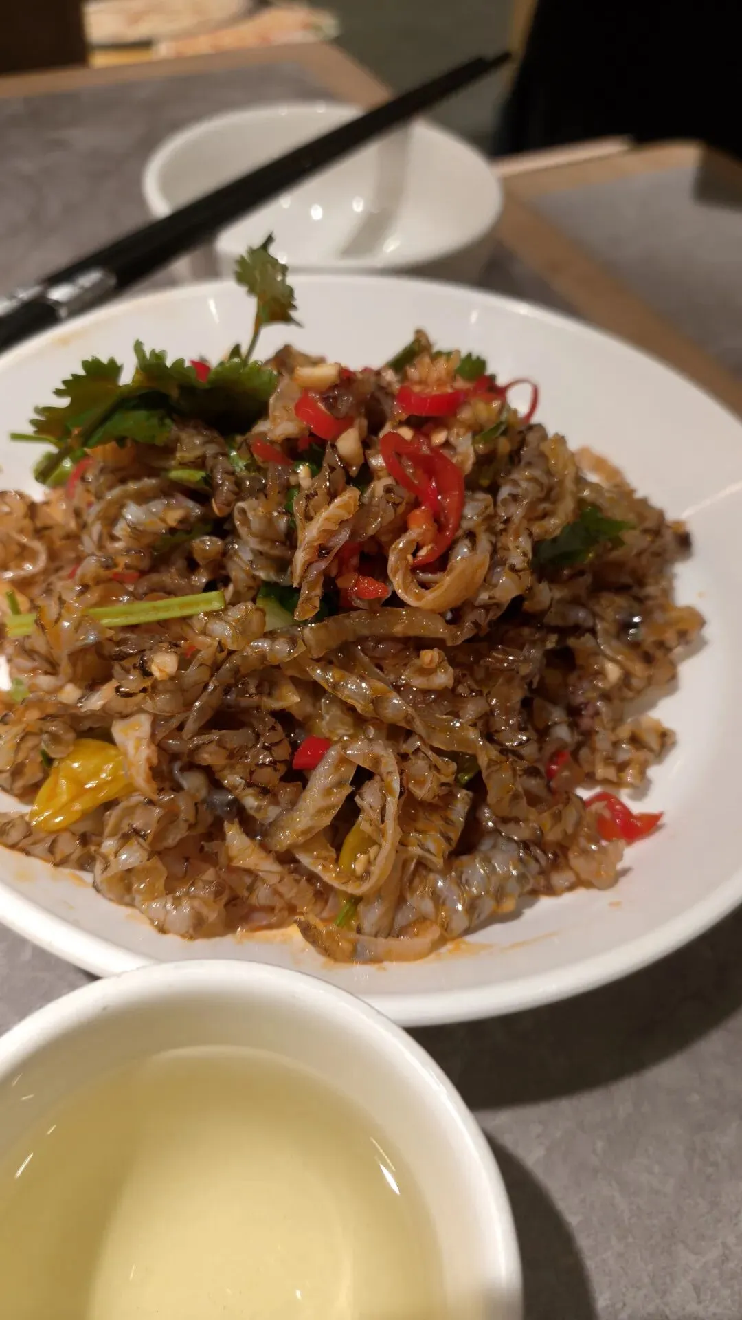 检查完医生说没事我就走了,把票改签到明天,和梁老板说好时间后,去老街吃了一直惦记着没吃上的炒牛河。味道一般,太淡了,不太符合我的口味。又去一家颇为有名的糖水店吃了芒果双皮奶,范老师说这都不正宗,只有原味和红豆是正宗的,但我吃的倒是很开心,芒果又大又甜,双皮奶味道醇厚不腻,18块钱一份,整体还是很满意的。范老师听说我还没走,晚上又给我找了一家猪肚鸡,下班之后两个人在店里汇合。比起椰子鸡,猪肚鸡很符合我北方人的口味,鸡肉比椰子鸡更劲道更香,椰子鸡用的是更嫩的文昌鸡,皮太厚了我吃不惯。猪肚也并非我想象的无法下咽反而很香,沾上灵魂沙姜非常不错,胡椒味的猪肚鸡汤也好喝。范老师另点了一份鱼皮饺和一份凉拌鱼皮,鱼皮饺实在是太香了太好吃了,凉拌鱼皮不太正宗,调的是咸辣北方口味,我反倒是很喜欢,鱼皮劲道鲜香非常好吃,如果外地也有这个东西,日后将成为我的常吃菜。