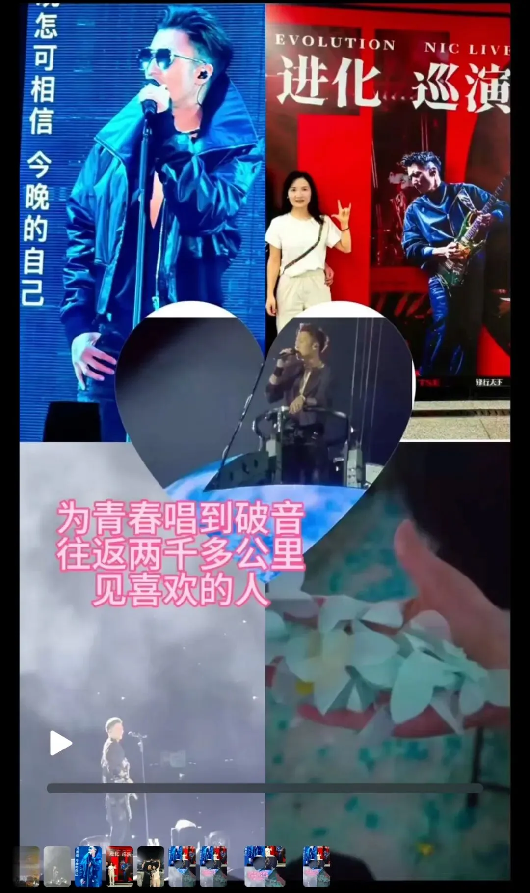 进场后,按耐不住的拍照打卡,但不敢多拍,生怕一会儿拍视频充电宝都不够。他一出场,灯光炸响,吉他声震得心脏发麻,啊啊……全场尖叫声不断。那一刻什么距离、车票、抢票的辛苦,全都值到爆炸。