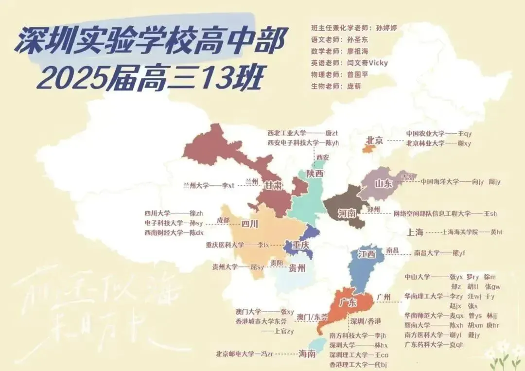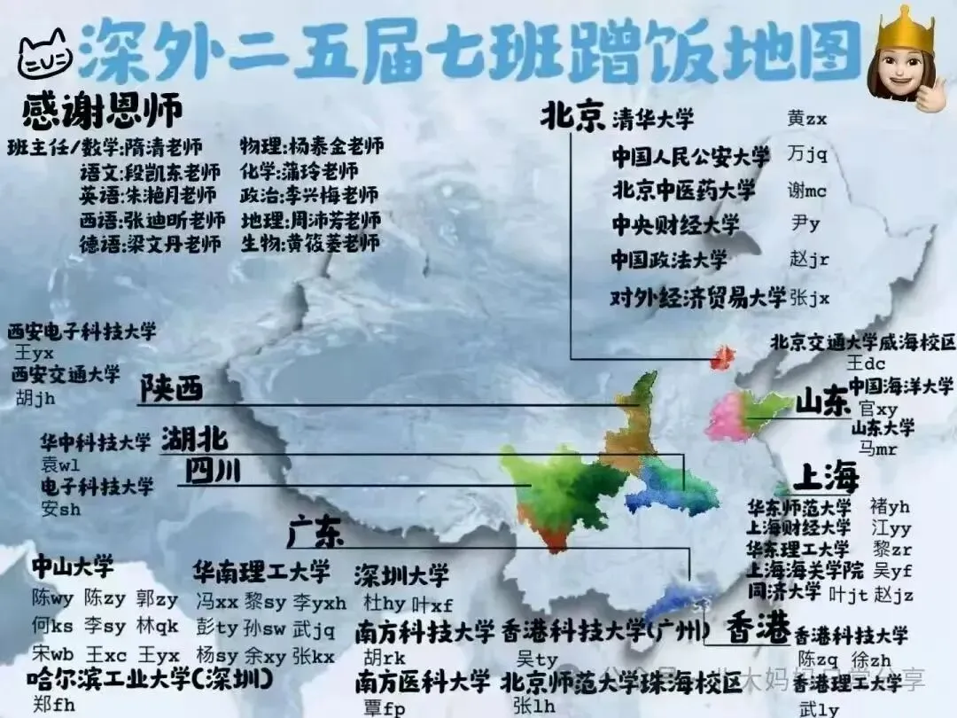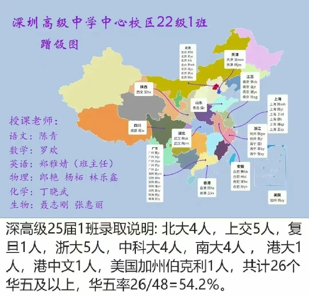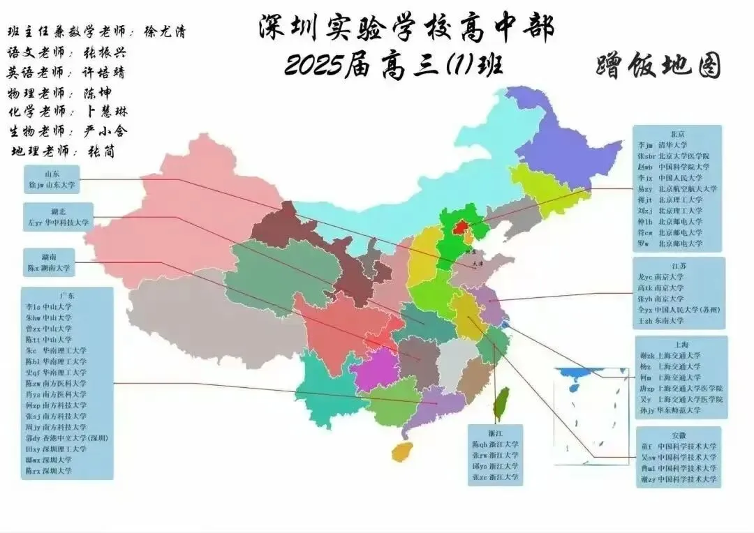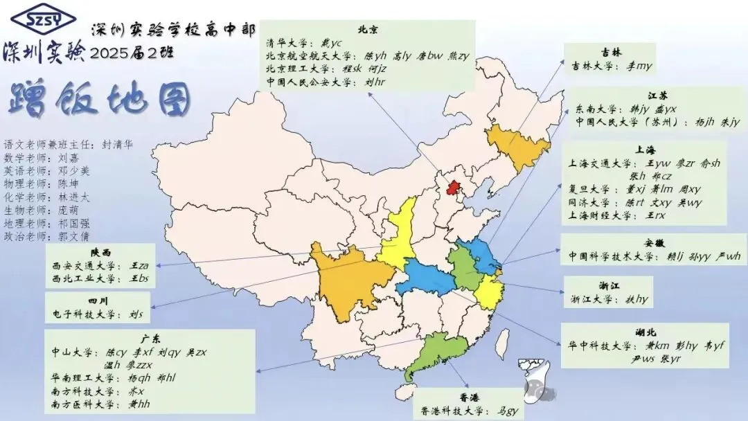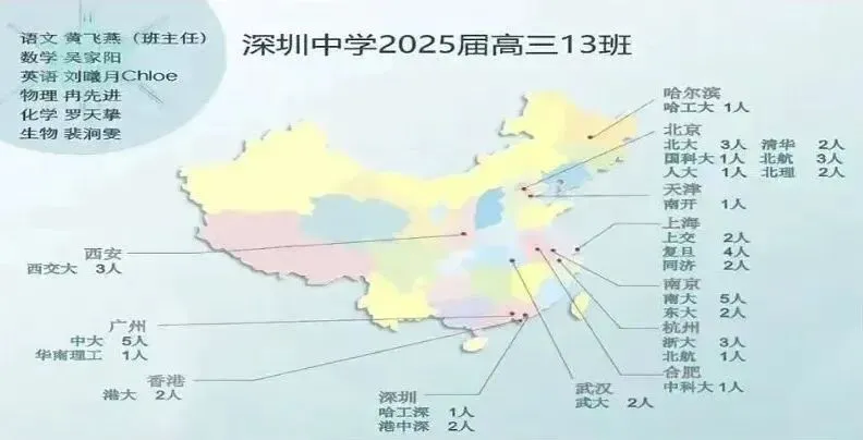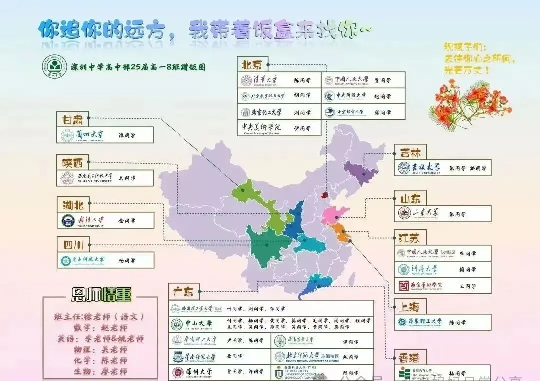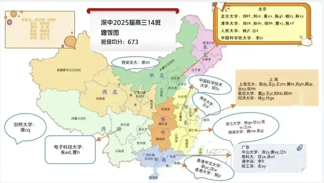 今天来看下深圳四大名校的“蹭饭地图”,也就是部分班级高考生去向。