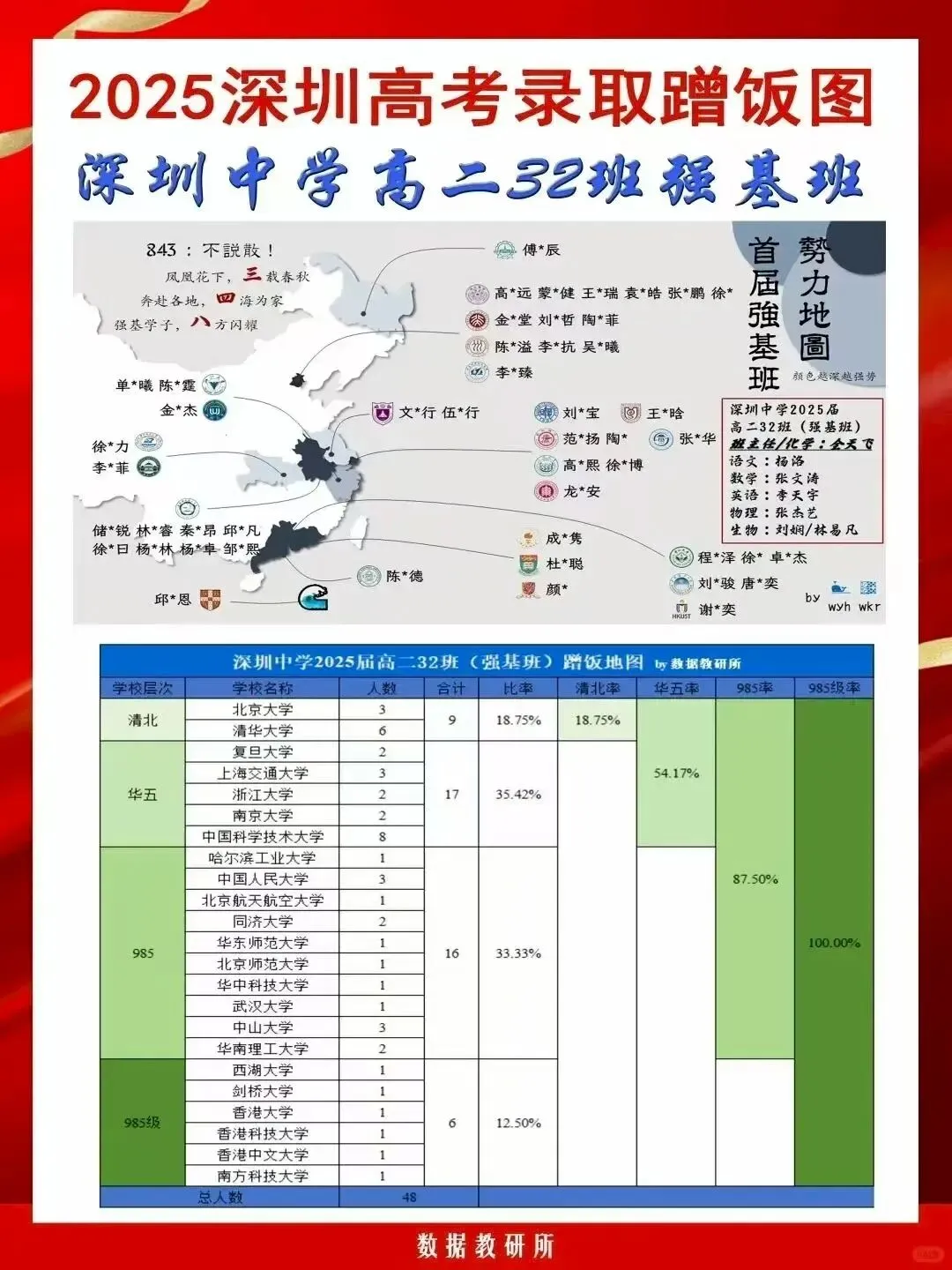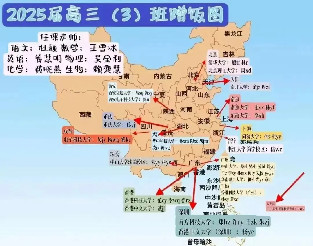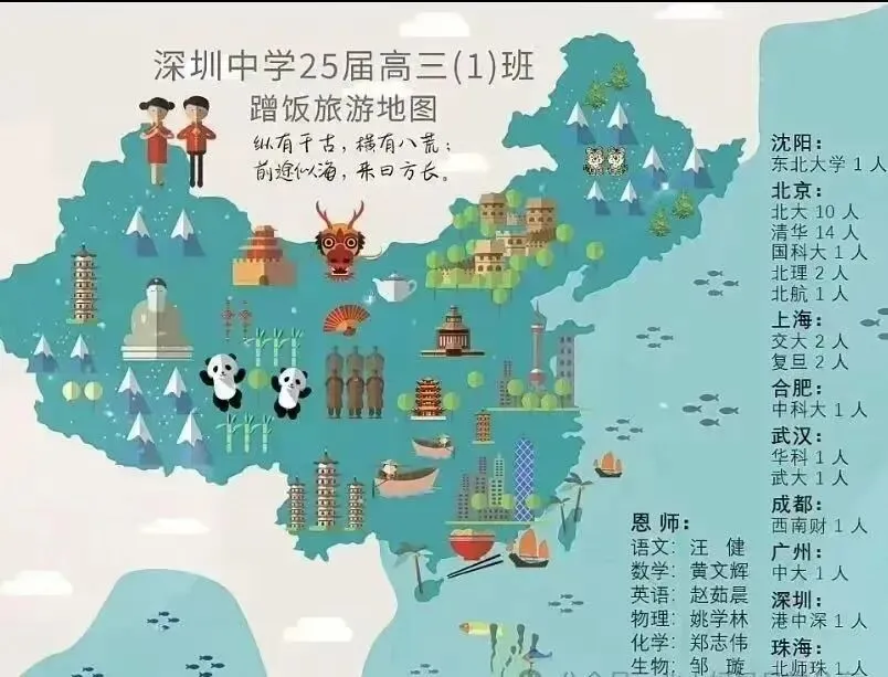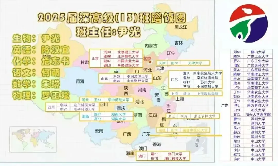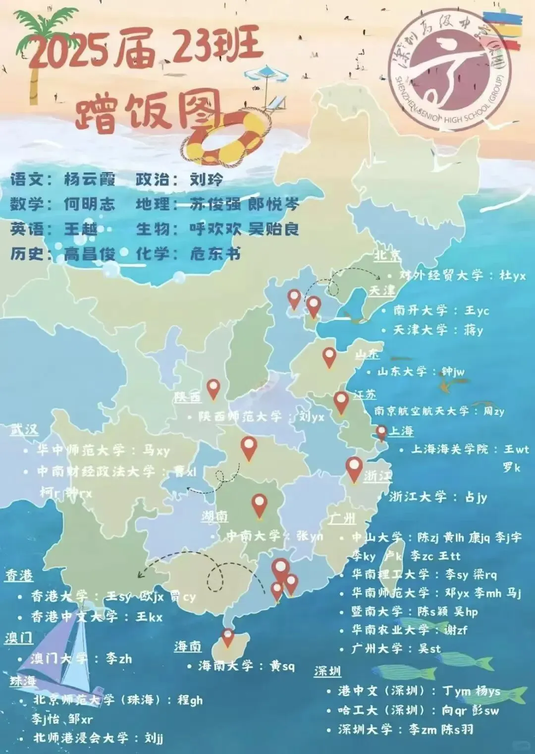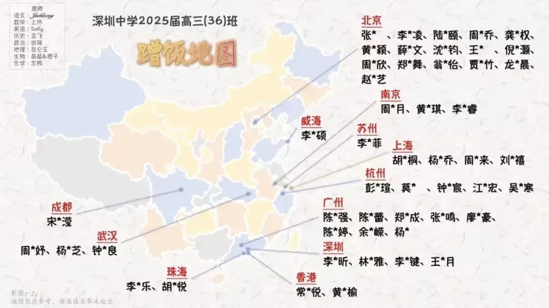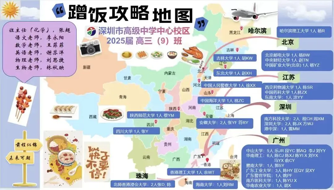 今天来看下深圳四大名校的“蹭饭地图”,也就是部分班级高考生去向。