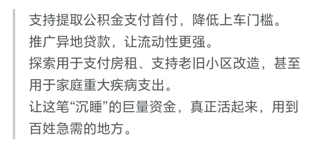 保障房建设不再是盲目新建,而是“以需定建、以需定购”。既去了库存,又快速增加了保障房供给,效率更高。深化住房公积金制度改革”这句话,含金量十足。意味着公积金将从“主要用来贷款买房”的单一功能,向全周期民生保障转型。