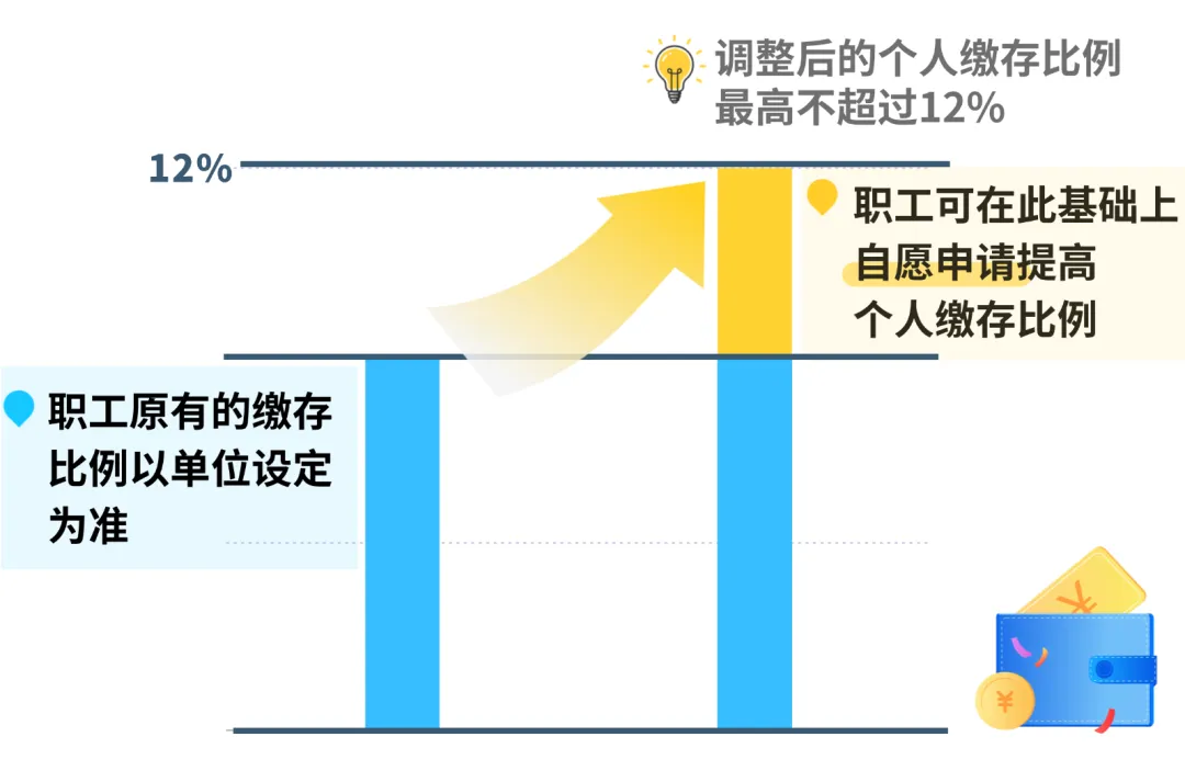 1️⃣规定:职工可在单位缴存比例的基础上,自愿申请提高个人缴存比例,最高不超过12%。