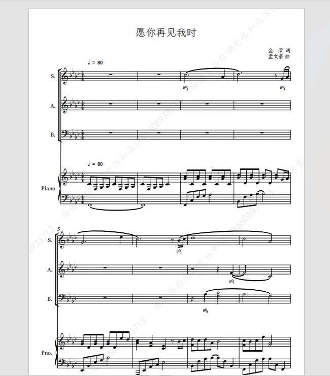 主营业务:演出比赛录音专用高品质音乐伴奏制作、原创编曲、合唱改编编配、扒带制谱、钢琴伴奏五线谱