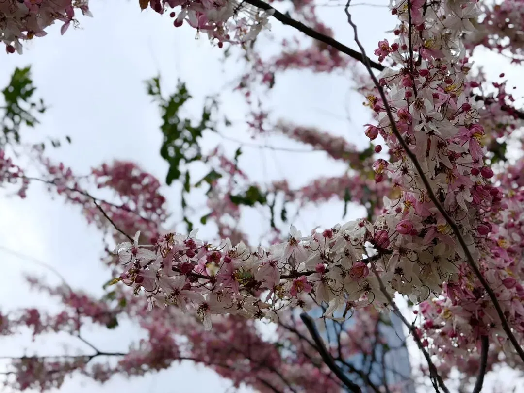 作为深圳少有的能看到纯正日本樱花的地方,人才公园的樱花真的太懂春天了!没有浓艳的色彩,只有淡淡的粉白,花瓣轻薄柔软,带着淡淡的花香,阳光透过枝叶缝隙洒下来,落在花瓣上,光影斑驳,每一处都美得像一幅画,随手一拍都是日系治愈大片,原片直出都不用滤镜!