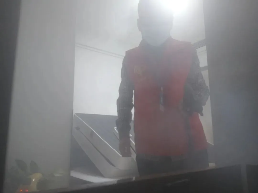 - 再用高温蒸汽以60-70度(蒸汽80公分射程)强压药剂渗透到材料内部。这是最关键的一步,高温蒸汽在高压的作用下,能够打开材料毛孔,迫使材料内部甲醛分子大量释放出来。