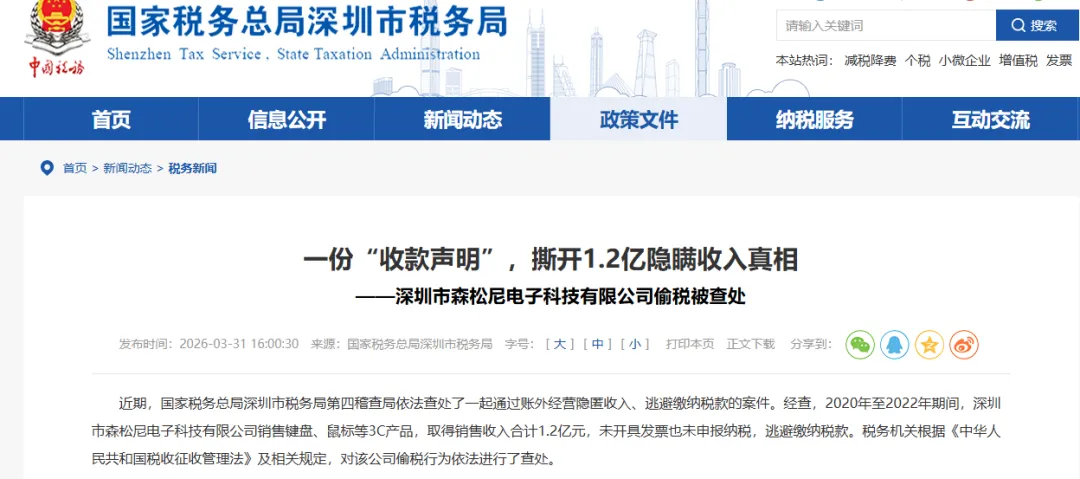 2026 年 3 月 31 日,深圳税务重磅通报一出偷税大案,直接炸翻整个跨境电商圈。