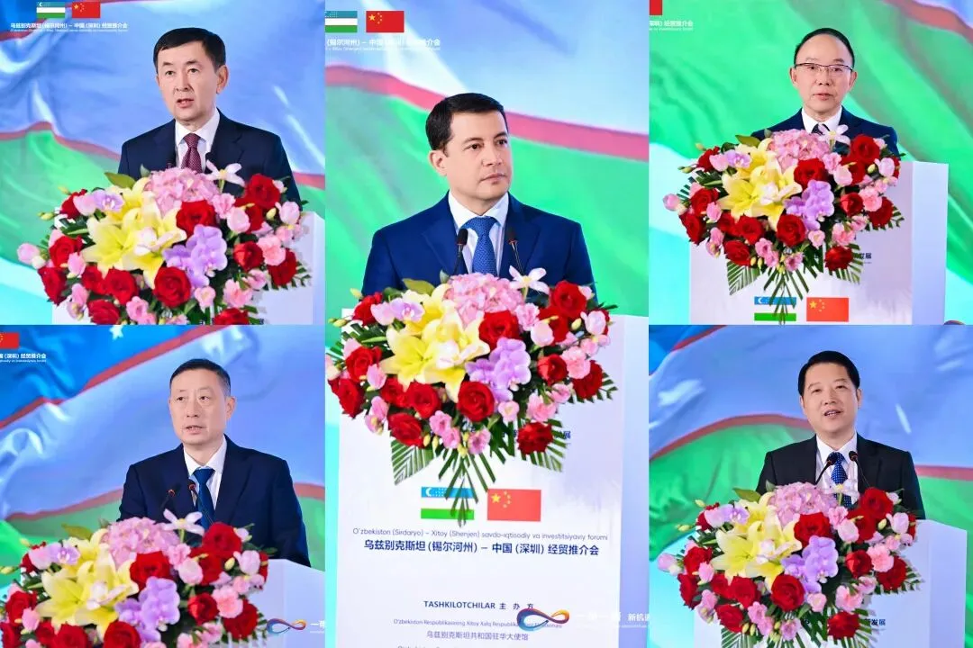推介会在热烈的氛围中拉开帷幕。乌兹别克斯坦共和国驻华特命全权大使法尔霍德·阿尔济耶夫先生、锡尔河州州长图尔迪莫夫·埃尔金琼先生、广东省商务厅二级巡视员陈虎先生、深圳市商务局一级调研员曾锦辉先生、乌兹别克斯坦—乌中商会会长杨波先生等中外方嘉宾出席活动并致辞。来自两国政府机构、商协会、企业界及媒体代表共计一千余人齐聚一堂,共叙友谊、共商合作。