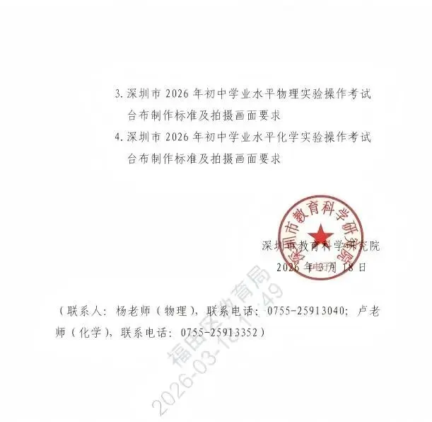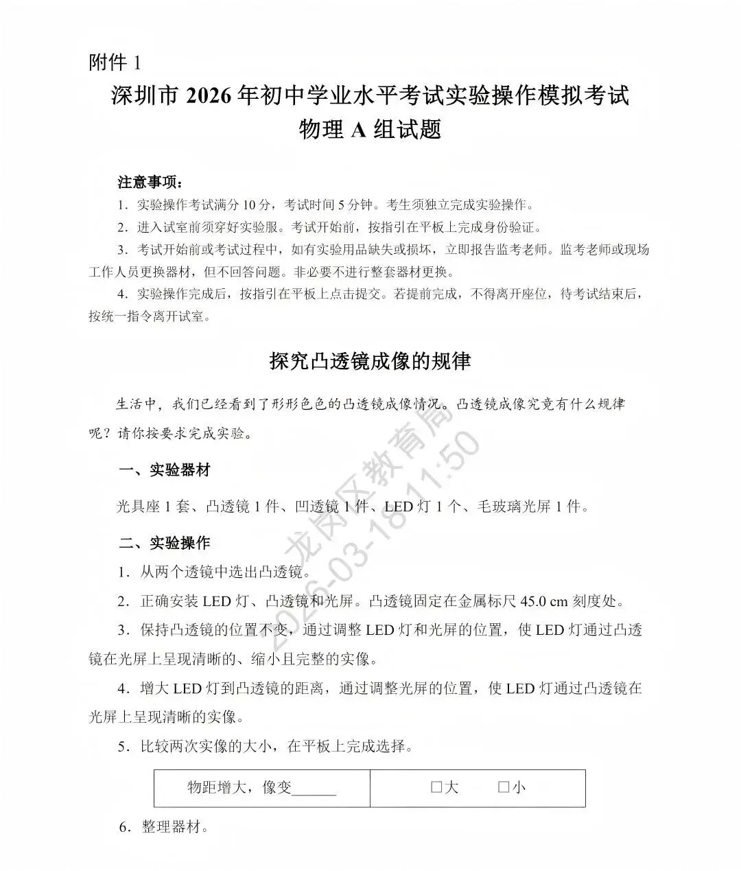2026深圳中考理化实验操作考试题公布及考试时间!(更新附2026年操作视频)
