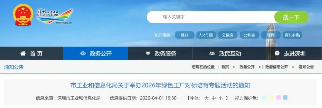 为深入贯彻落实工信部《绿色工厂梯度培育及管理暂行办法》《深圳市绿色工厂梯度培育管理实施细则》等相关要求,进一步构建我市绿色制造体系,加强绿色工厂梯度培育,发挥绿色工厂在制造业绿色低碳转型中的基础性和导向性作用,加快形成规范化、长效化培育机制,打造绿色制造领军力量,现组织举办2026年深圳市绿色工厂对标指导培育专题活动,有关事项通知如下: