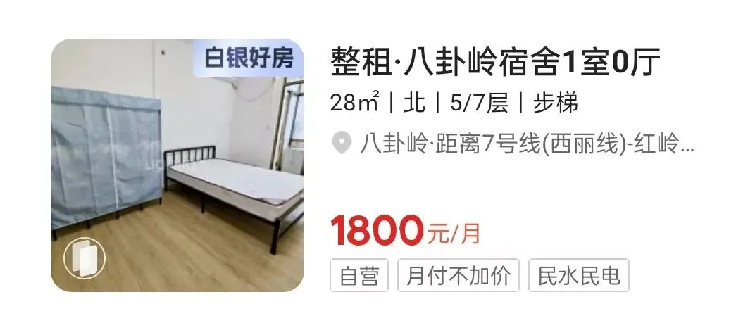 我看了下,八卦岭宿舍目前一套29平房源,挂牌价100万,这个户型租金1800元左右。