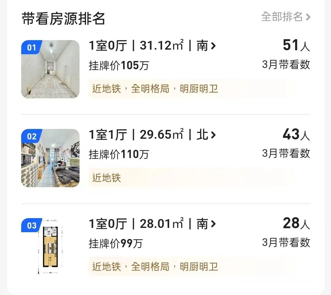 几个老破小户型,3月带看的人数就有40-50人。