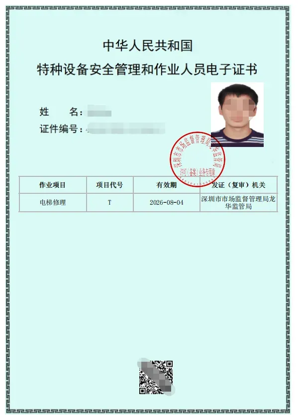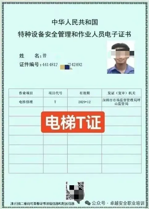 电梯修理证,也叫电梯T证,这是我们学员今天刚下的证~
