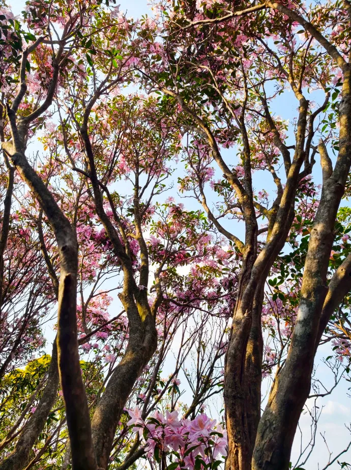 深圳梧桐山,十万株毛棉杜鹃盛放!杜鹃谷、万花屏核心观赏区化身粉色海洋,“云端仙子”如云似霞,把整座山染成姹紫嫣红。