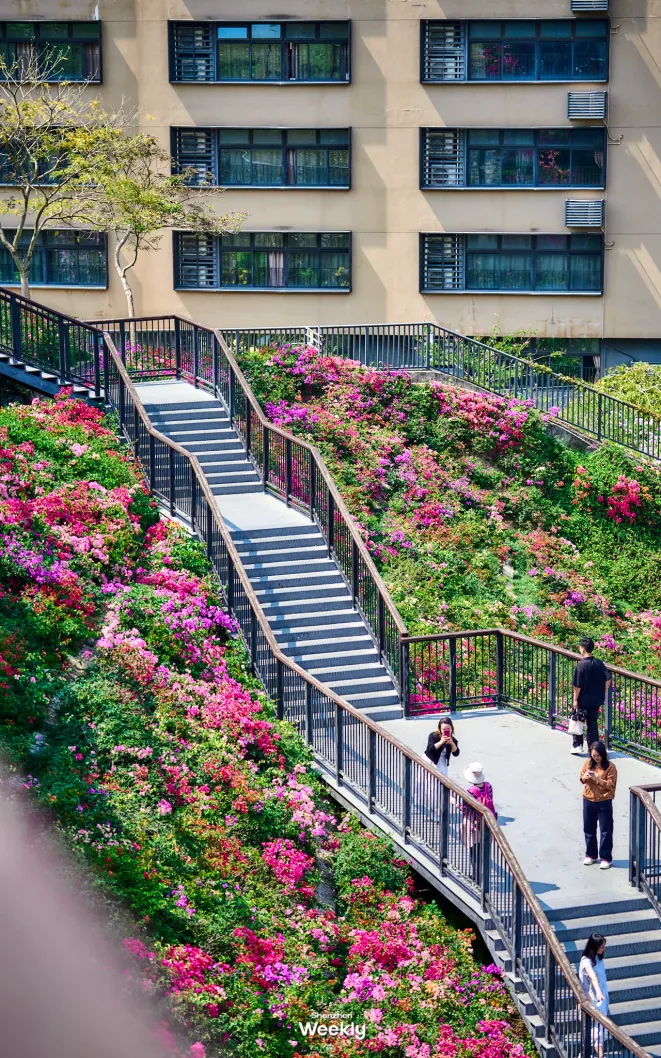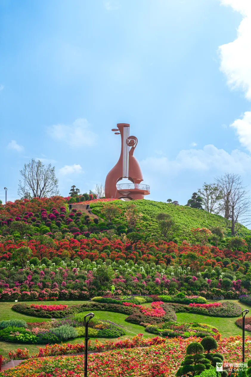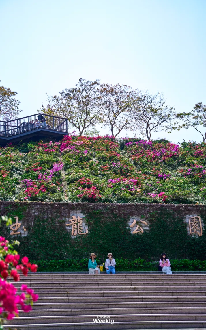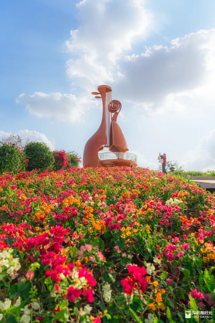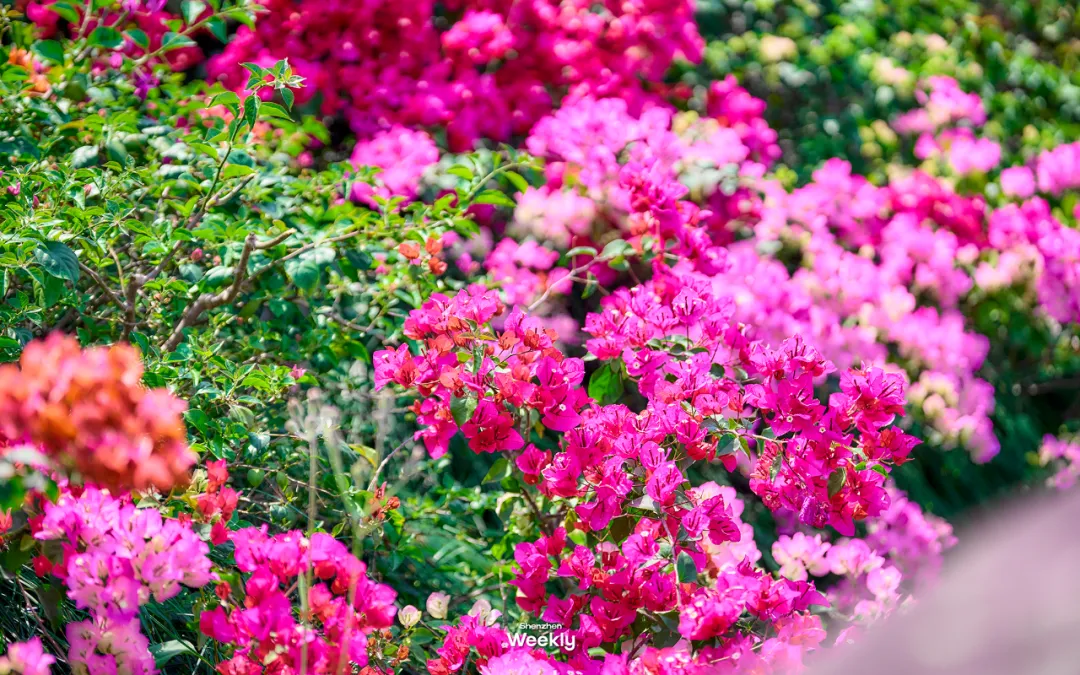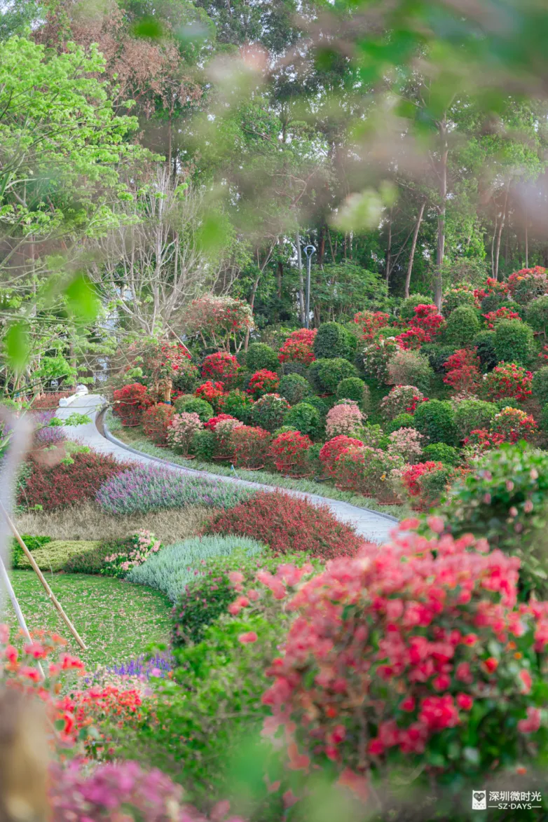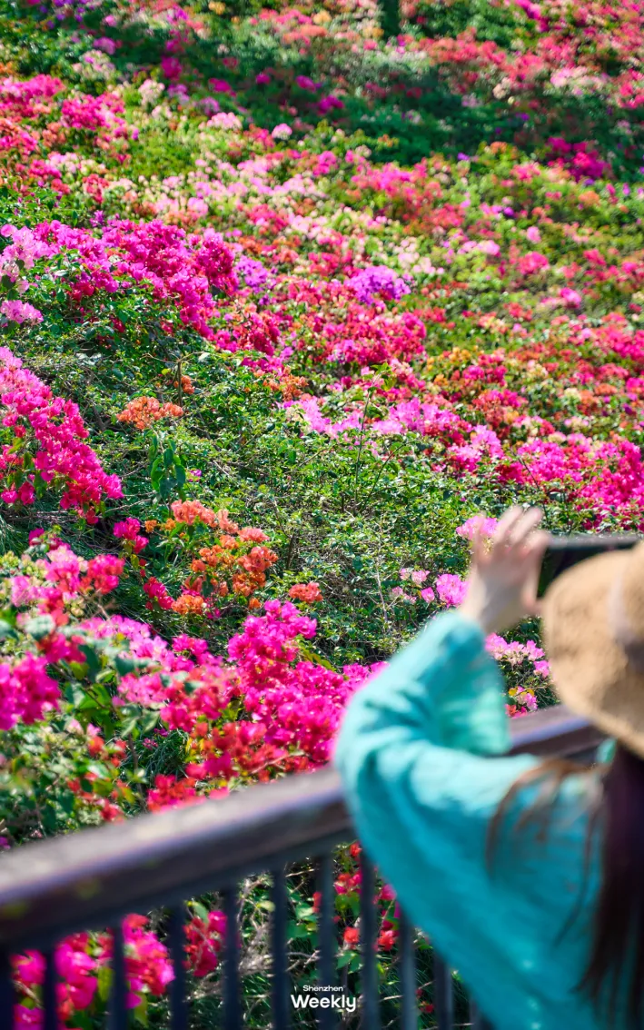 深圳山花烂漫公园(原黄金山公园)占地面积4.2万平方米,以“山花烂漫·四时有景”为理念,是龙岗国际艺术中心的文化空间外延。公园种满了三角梅,在花海眺望,让人有种“左手看展,右手爬山”的惬意。