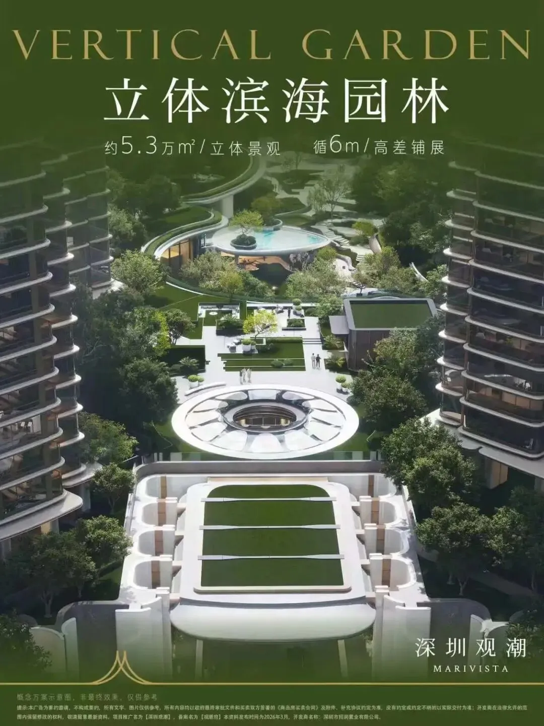 「深圳观潮」由华润置地与招商蛇口两大央企联袂打造,是深圳新规2.0下首个无7090限制的纯粹豪宅社区。项目坐拥宝中头排南向一线海景,容积率仅3.4,采用小高层设计,并创新性地通过“底盘”概念打造了约8万㎡的立体园林、会所及商业配套。其户型涵盖143-330㎡,使用率接近100%,满足了从高端改善到顶豪客群的全维度需求。