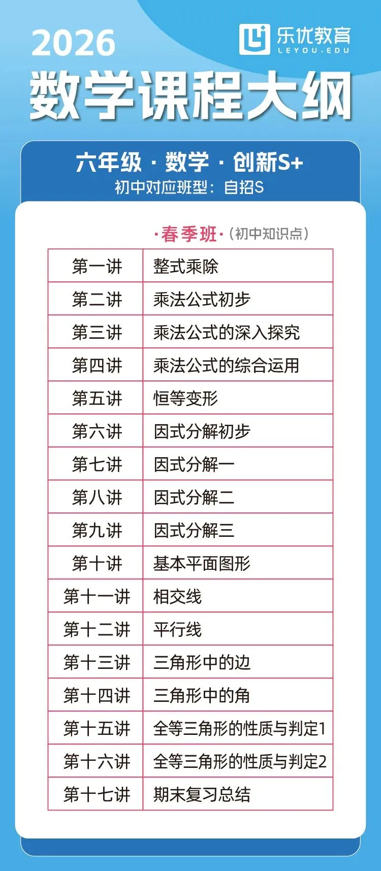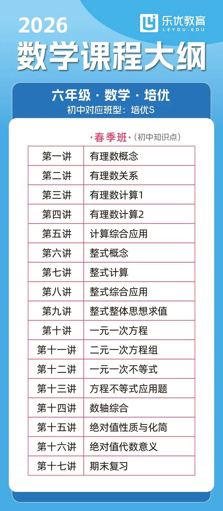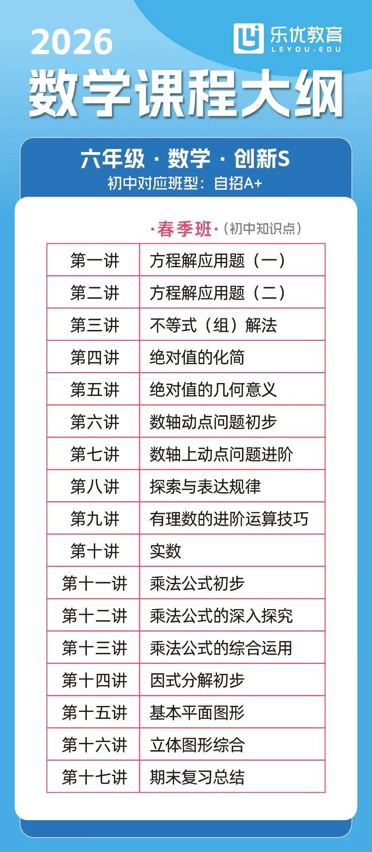 六年级春季大纲