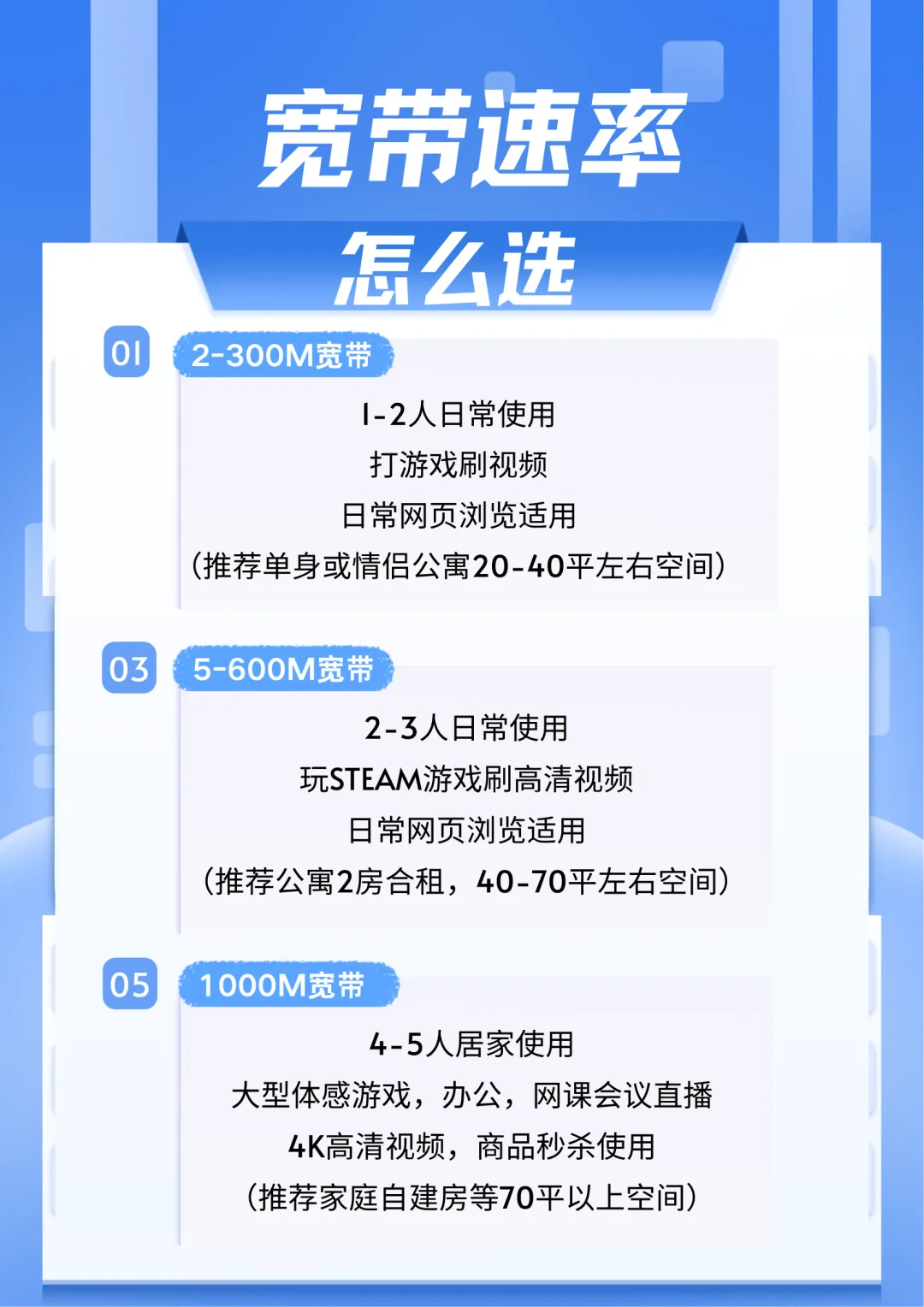 看完应该对自己要选择多大速率的宽带基本有个底了~下面就是具体的套餐内容啦~套餐会比较多,各位看官挑选套餐的时候,可以将刚才的速率定律带入到选择条件里面,这样可以更精准的找到适合自己的宽带套餐噢~