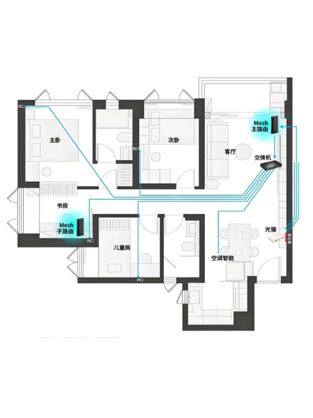 速率跟运营商套餐这些都选完了,最后就要到设备方面的问题了。现在市面上主流的千兆路由器设备,算上建筑/家具格挡的因素,实际单个路由器覆盖普遍只有60平米左右,所以正常两房内的户型一个路由器的够了。