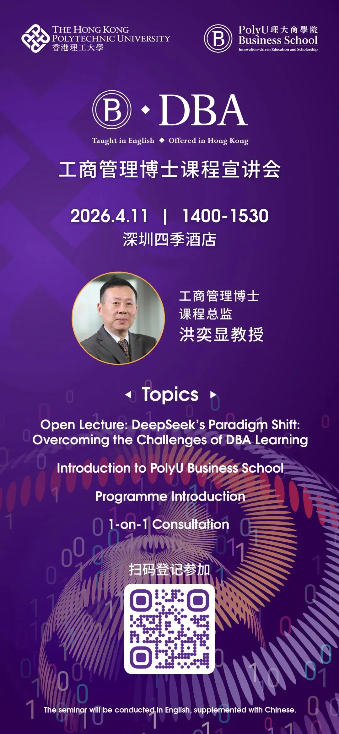 理大商学院诚邀您参加2026年4月11日工商管理博士课程Doctor of Business Administration (DBA) 宣讲会 (深圳站)!