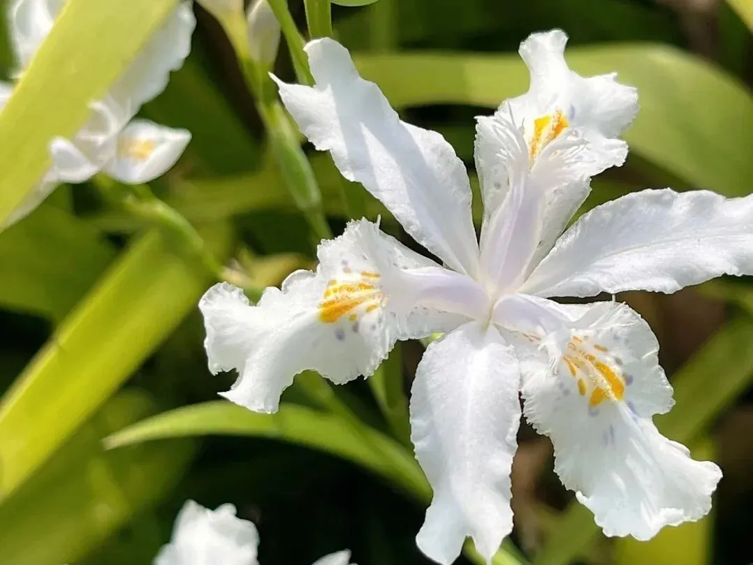 今年花展的主题花,是素有“彩虹女神”之称的鸢尾。叶片修长舒展,如同鸢鸟展翅欲飞,花朵姿态清雅又带着韧劲。