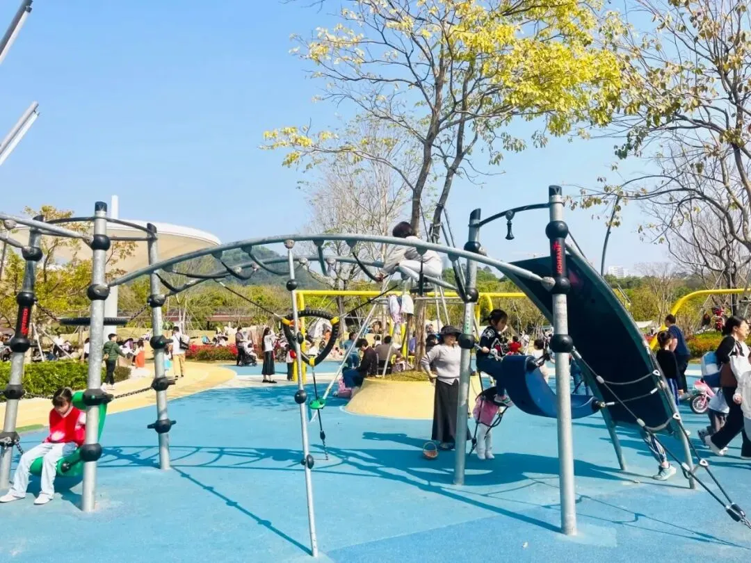 笔架山体育公园自带大片草坪与儿童乐园,还有各种游乐设施与沙池。逛完满径繁花,不妨带着孩子肆意撒欢,不负春日好时光。
