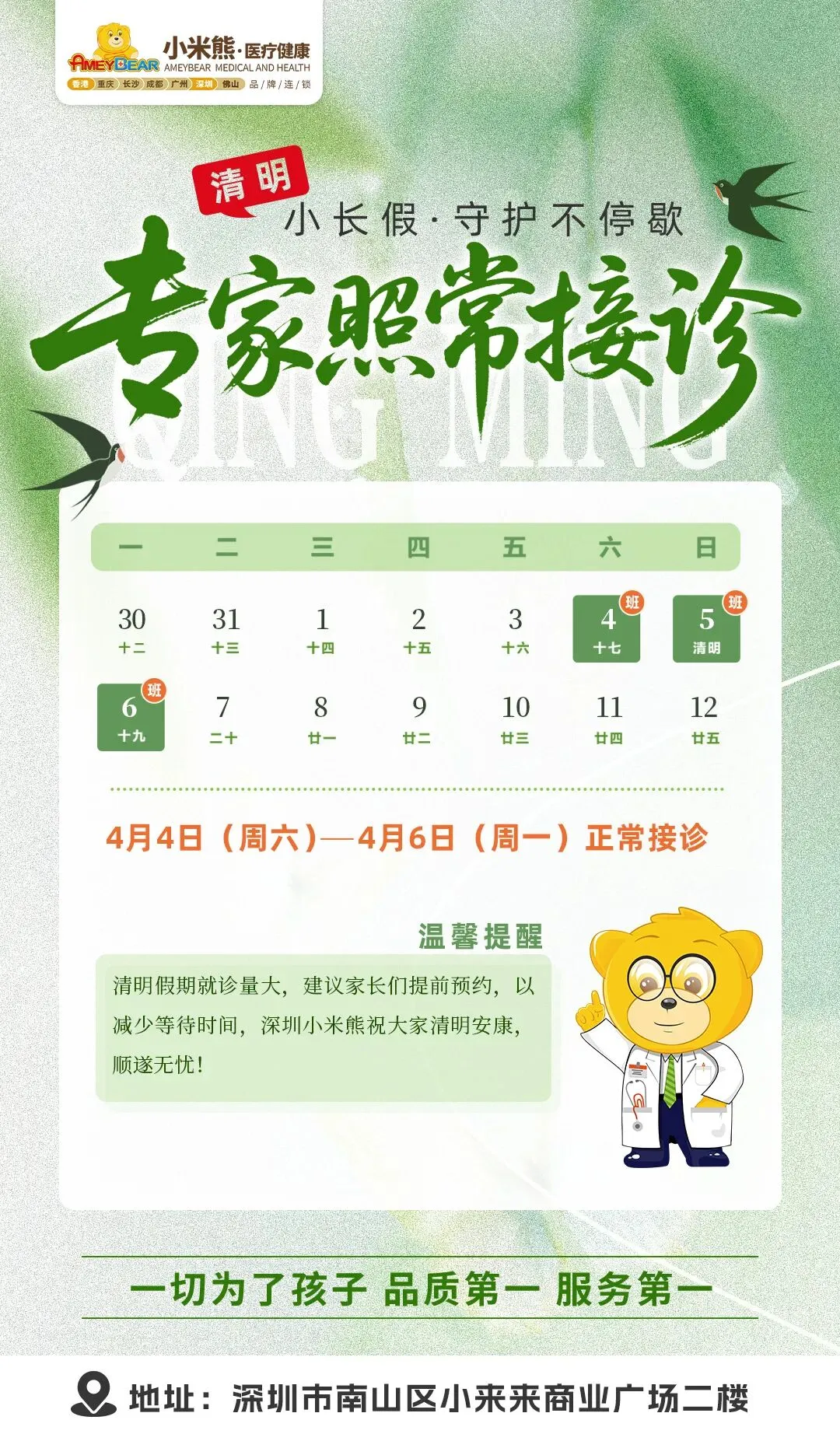 清明不打烊,守护不缺席 | 深圳小米熊清明假期正常接诊,健康守护伴您同行!