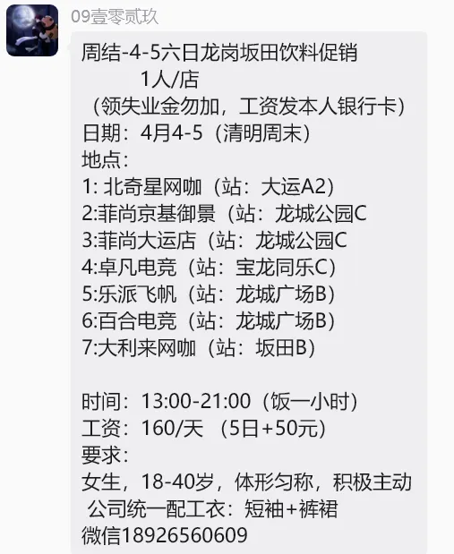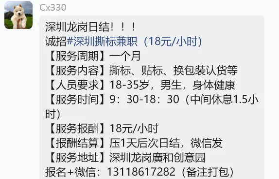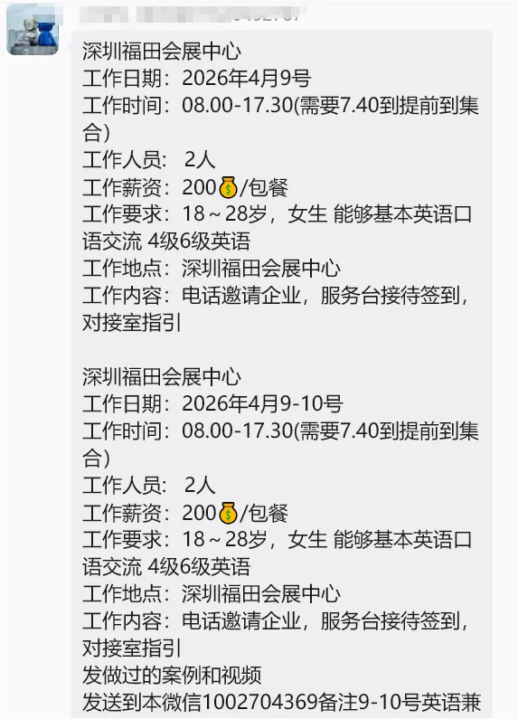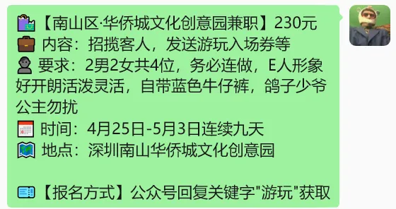 深圳兼职情报局 | 电子组装包装220/天、快闪店导购160/天、春游副班110/天、漫展参观110/天……火热招聘中!
