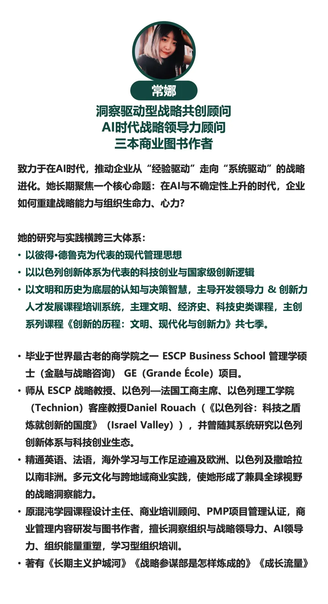 当你打开这篇文章,也许你正处在一个不太轻松的阶段:企业在运转,但增长变慢;团队很努力,却始终难以形成合力;方向不断调整,却始终没有真正的确定感。很多问题,看起来是执行问题、管理问题、甚至是市场问题。但你心里可能隐约知道:问题,没那么简单......你以为你在解决问题,其实,你只是在反复修补一个正在失去生命力的系统。你可能已经尝试过很多方法:学战略、做组织、上系统、引入AI……但问题依然存在。因为——你解决的,一直是“局部问题”,而不是“系统本身”。一切失序的背后,都有一个更深的原因。《道德经》说:“道法自然。”真正有生命力的系统,是自洽、流动、彼此贯通的。于是,一个关键链路被切断:情报→ 洞察→ 战略→ 商业模式→ 组织→ AI。看似都在运作,实际上——彼此割裂,彼此消耗。所有增长问题,本质只有一个,不是能力问题,也不是努力问题。彼得·德鲁克早已说清楚了本质:“战略不是研究未来做什么,而是研究今天做什么才有未来。”问题从来不在未来。而在于你今天的组织,是否具备通向未来的能力。你真正面对的,不是“增长问题”,而是“进化问题”。很多企业在做三件事:优化管理、提升效率、引入AI。但这些,本质都是“优化旧系统”。而你真正需要的,是重建一个能够持续进化的组织系统。我们把这个问题,重新定义为一条公式:企业增长= 战略清晰度× 商业模式创新力× 组织生命力× AI 赋能效率× 情报敏锐度任何一项为零,增长就会归零。《道德经》讲:“反者道之动,弱者道之用。”真正的转机,往往不是更强控制,而是让系统重新恢复“感知与流动”。一个真正有生命力的组织,会做三件事:感知变化(洞察弱信号),做出取舍(形成战略共识),持续生长(转化为组织能力)。而不是内部博弈、被动响应、事后修补。所以,你真正要问的,不是“怎么做”,而是:如果这些问题没有答案——所有努力,都会变成低质量的忙碌。我们做的,不是培训,而是一次“回到本源”。这也是这场工作坊存在的意义,不是讲知识,而是帮你打通一条从洞察到增长的完整路径。让组织,从“结构”回到“生命”。我们不会提供标准答案,而是与你一起,完成一件更重要的事:重新看见你自己的企业。从“看见”,到“重构”。在这场工作坊中,我们将共同完成一条路径:最终,你会得到的不是一套方法,而是——一套属于你企业自己的“增长逻辑”。这不是一门课,而是一场“共同推演”。我们不会给你标准答案。我们会做的,是帮你提出真正关键的问题、帮你看见你忽视的结构、帮你与团队形成“共同选择与承诺”。因为真正有效的战略,从来不是“被教出来的”,而是一群人一起想清楚的。德鲁克还有一句话:“管理的本质,是关乎人的。”而在AI 时代,这句话变得更加重要。因为技术会越来越强、信息会越来越多、唯一稀缺的,是人的——洞察力、判断力、与创造力如果你正处在这些阶段,这场工作坊会非常关键。最后,留给你一个无法回避的问题:在这个变化越来越快的时代,你是继续——修补一个逐渐失效的系统?