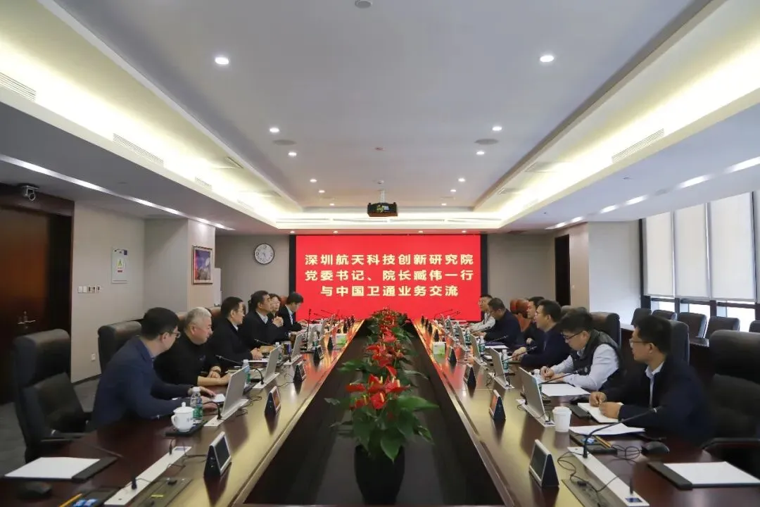 日前,深圳航天科技创新研究院(以下简称“深研院”)党委书记、院长臧伟一行到中国卫通开展业务交流。中国卫通党委书记、董事长孙京主持会议,党委副书记、总经理马海全,企发部、科研部、卫星应用创新研究院、综合办参加会议。双方介绍了基本情况和“十五五”发展规划,并针对商业航天、卫星互联网、航天器测控等方面的商业模式和发展思路进行了深入交流。