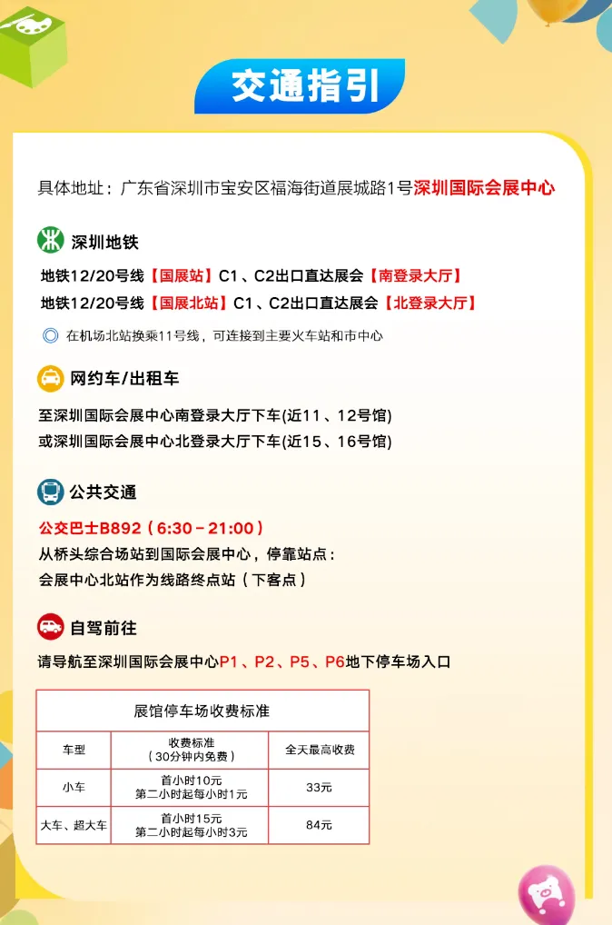 12号线/20号线国展站C1/C2口,国展北站D口,直达深圳国际会展中心。