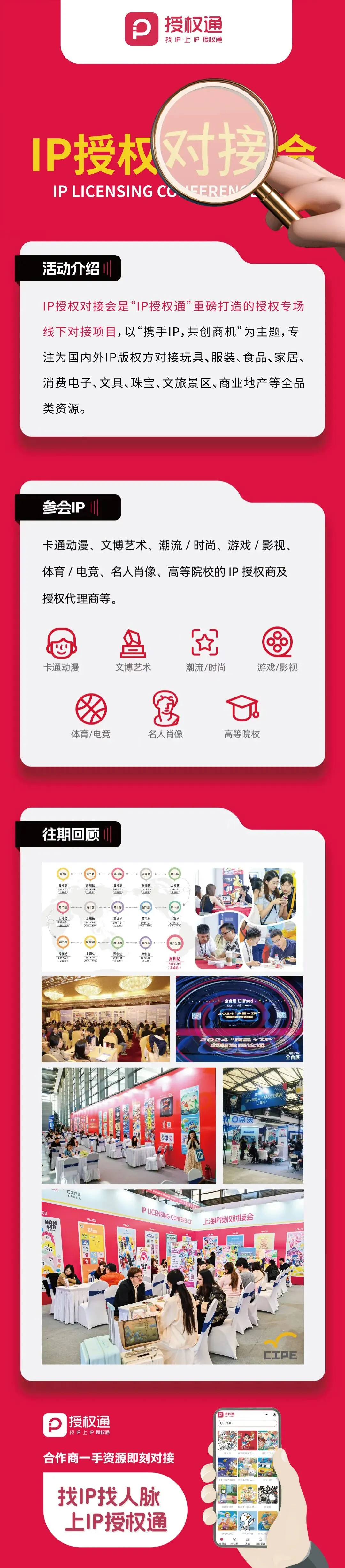 ✨IP版权方展区:卡通动漫IP、影视IP、游戏IP、文创IP、潮玩IP、娱乐IP、出版IP、文博IP、艺术IP、时尚IP、网络文学IP、体育电竞IP、企业品牌IP、文旅IP等;