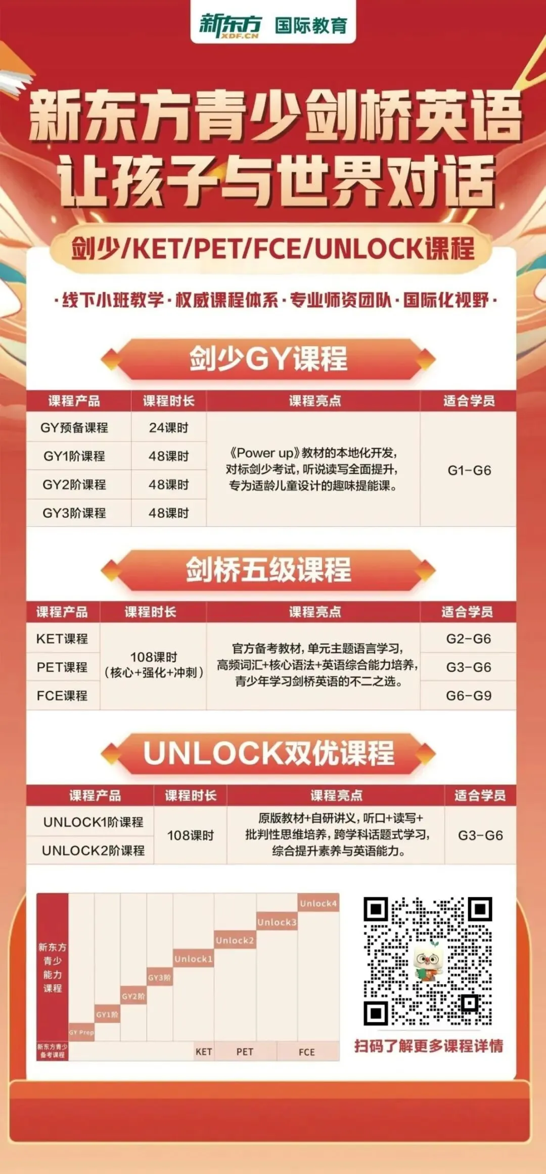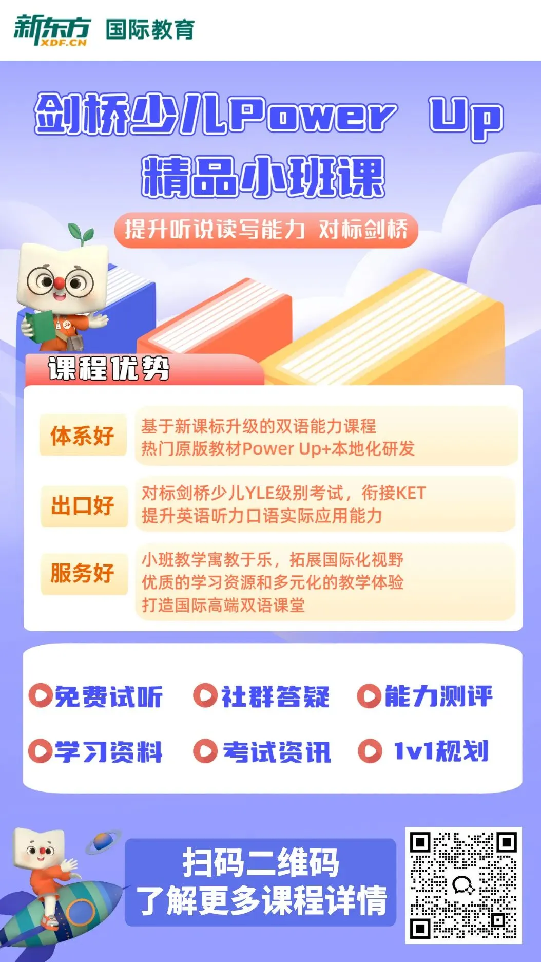 新东方青少国际教育目前开设剑桥少儿英语Power Up提能课程。