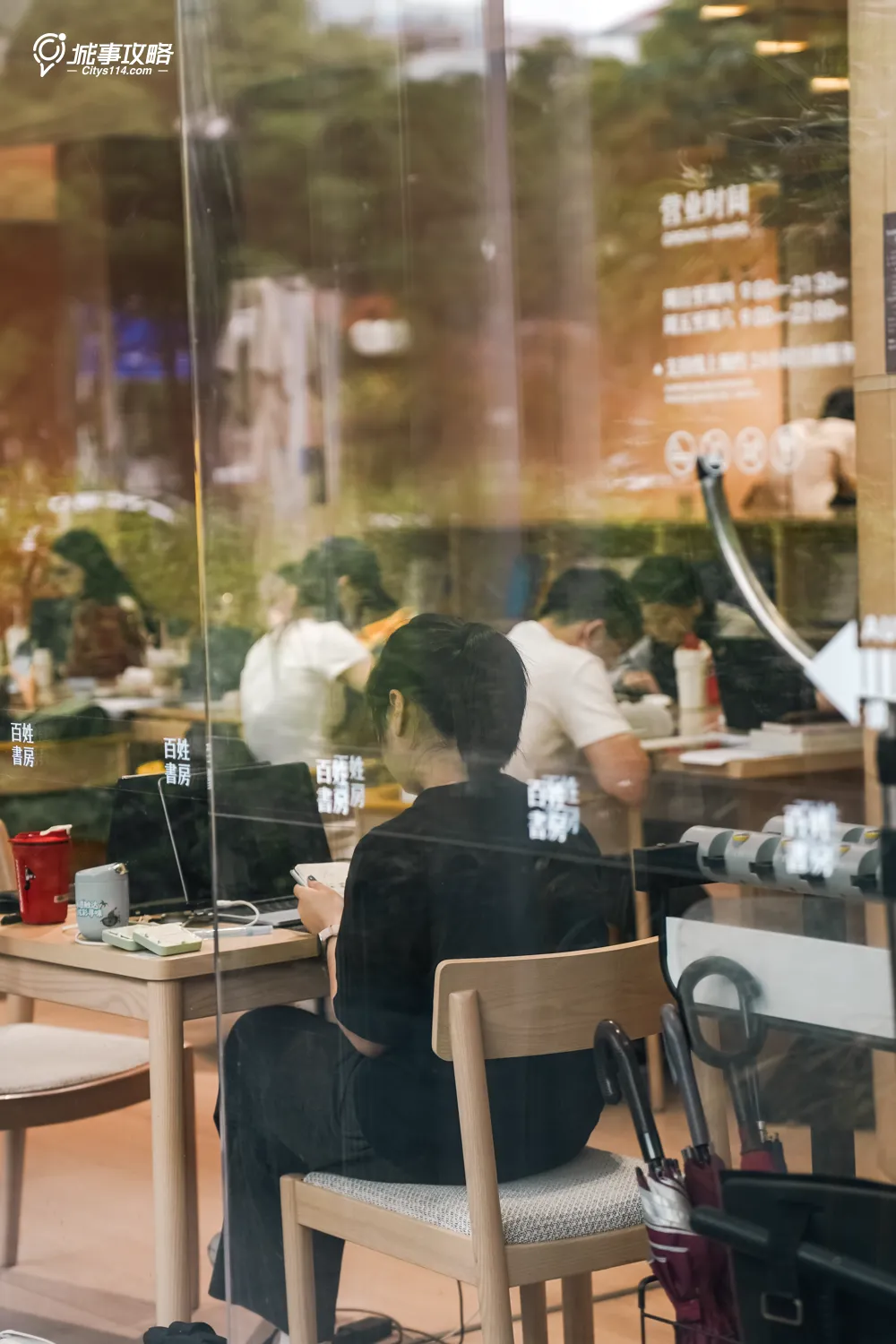 座位配有充电插座和WiFi,学习、办公都很方便。如果待累了,一楼还有咖啡小铺,可以随时补给能量,是不少深圳人的下雨天自留地。