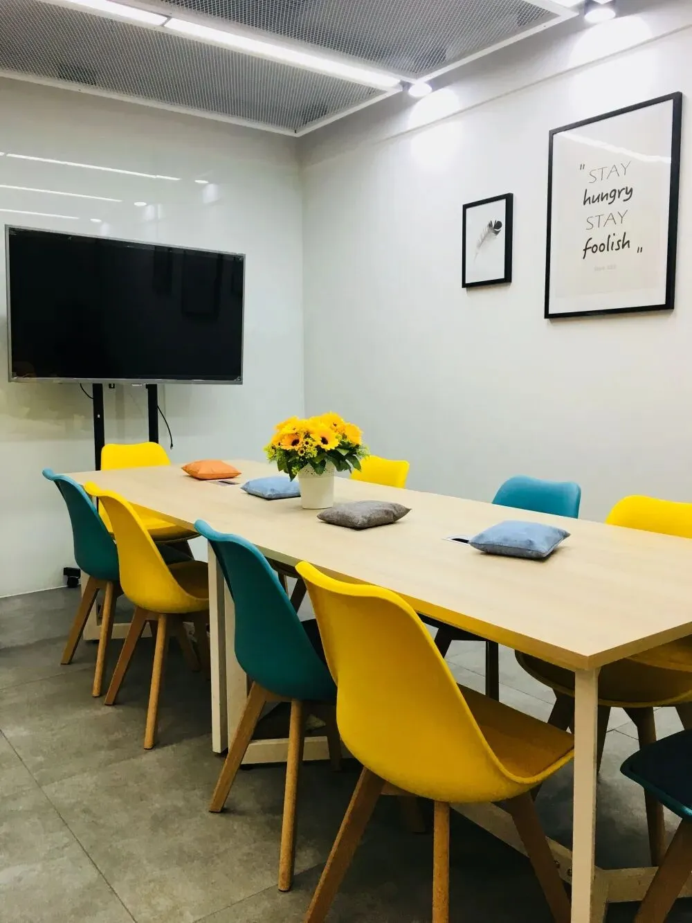 2、设备齐全:前台可根据您的需求为您提供访客接待服务,投影、白板、宽带、茶水等一应俱全。