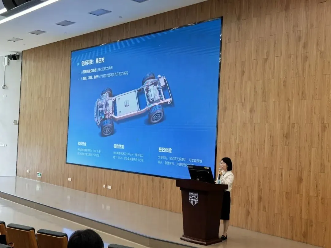 宣讲会上,比亚迪招聘团队全面介绍了企业发展历程、全球产业布局、核心技术优势与企业文化。作为全球新能源汽车行业的领军企业,比亚迪已构建起覆盖新能源汽车、动力电池、储能、半导体、光伏、消费电子等领域的全产业链生态,持续以技术创新引领行业发展,为青年人才提供了广阔的职业成长平台。
