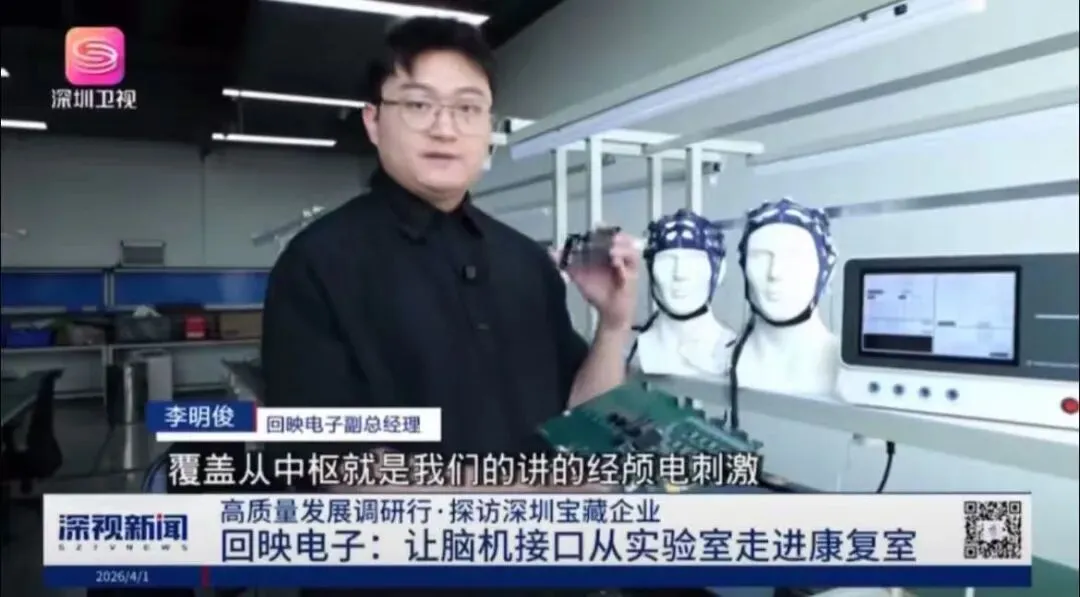 近年来,全球脑机接口市场迎来爆发式增长,作为国家级高新技术企业,深圳市回映电子科技公司深耕非侵入式脑机接口与神经调控领域。十余年从技术到产品,一步步打通康复场景的落地路径,今天走进这家宝藏企业,看它如何凭借扎实的积累,在前沿赛道里找到属于自己的突破口。回映电子副总经理 李明俊:这台机器就是我们公司的多环路神经闭环调控系统,这是机器的电路板,大家可以看到我们采用了模块化的设计,我们刺激干预的板卡有多种模式覆盖,从中枢就是我们的讲的经颅电刺激到我们的脊髓电刺激,再到我们的迷走、外周一系列的神经环路,我们都覆盖了。基于这一套系统与概念,我们于2025年获得了全国颠覆性技术创新大赛的三等奖。