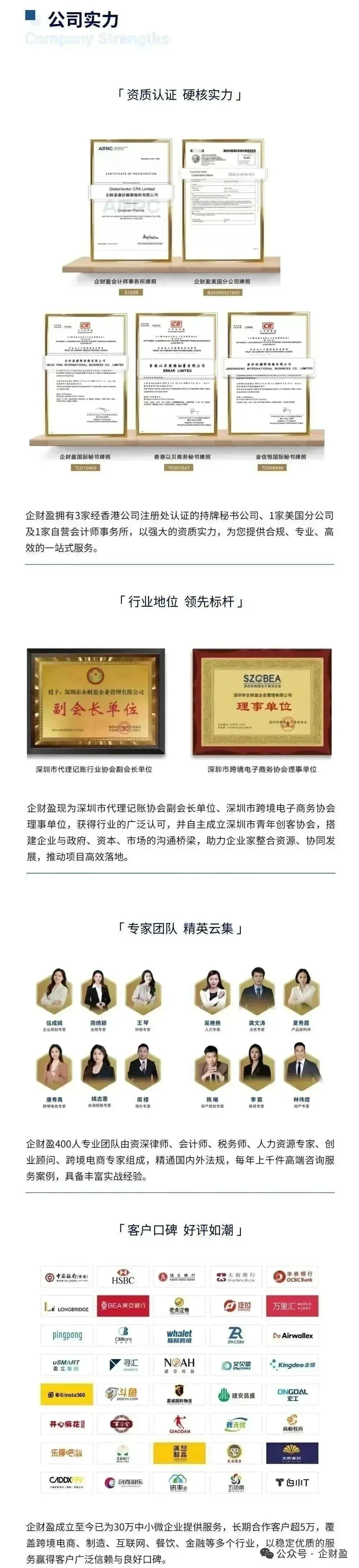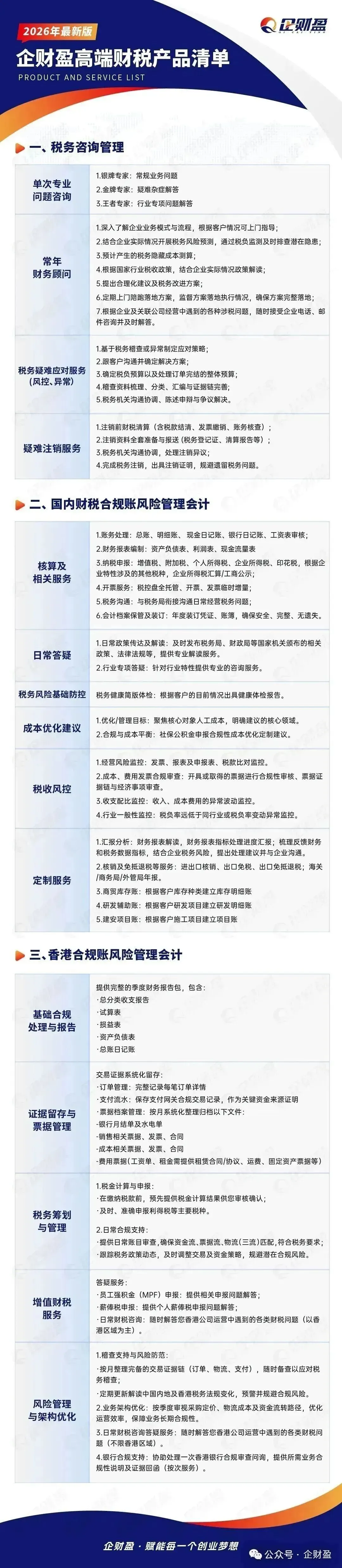 企财盈作为专业的一站式商务服务平台,致力于为广大客户提供香港公司注册、做账报税、年审审计、财税合规、股权架构、ODI备案、香港身份、移民留学等高质量服务。助力企业全球化发展。