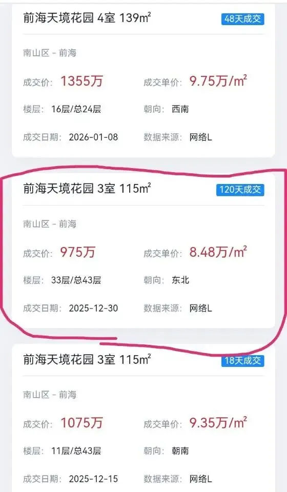 西部中间的最核心,桂湾前湾,低价成交拉崩整个西部。有了这个价格参考,除非出现现象级行情,否则以后成交都会在这个区间或者更低。前海核心桂湾云海湾低楼层马上会赢来超大踩踏潮,低楼层及边角料疯狂卷低小区价格。独一变数在我司。核心一环都止不住,二环三环延后会散出去,比如海纳公馆等…现在入手风险性还是极高。房圈观望,那还有股圈,加入未来房产圈会员,让资金动起来。