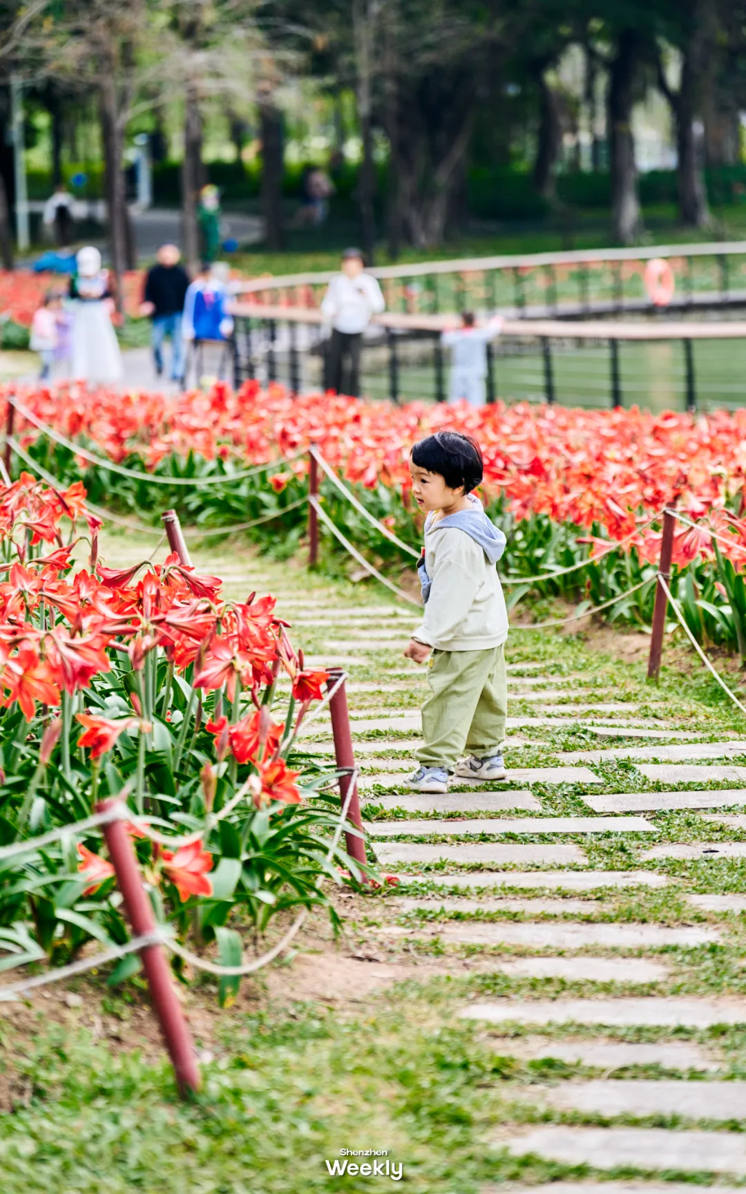 对于深圳的春天而言,朱顶红是一抹醒目的亮色。在一众粉嫩娇艳的花海中,朱顶红显得更加热烈奔放,粗壮的花茎擎着数朵火红色的花苞,浓郁端庄,在南国的暖阳里格外鲜亮。
