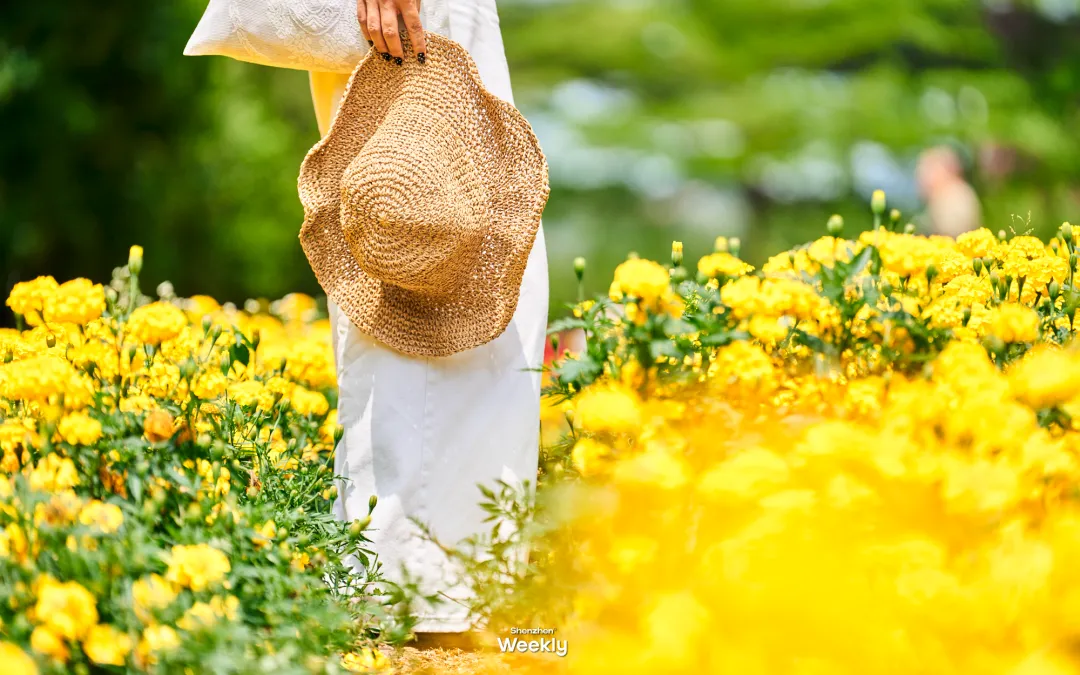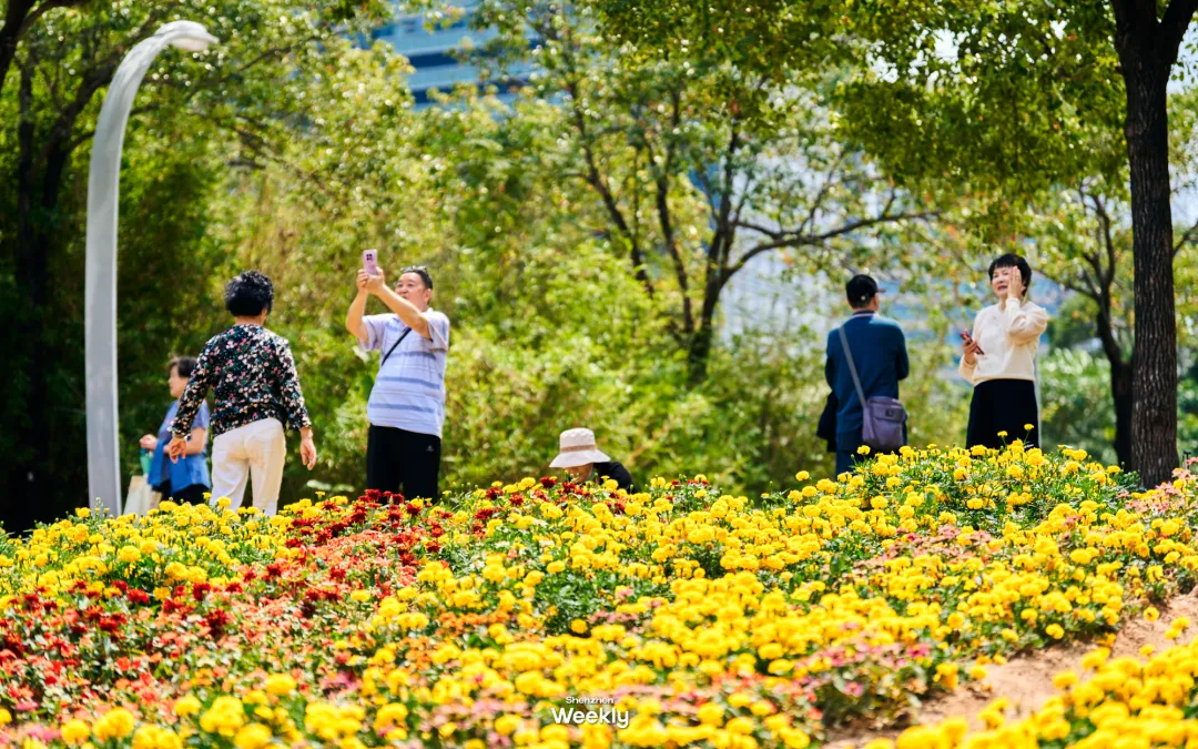 在深圳,万寿菊不算常见的花种,每年只能在市民中心短暂的看上一遍,即便不是主流,但每年这抹金黄盛开之时,都能吸引住大家的视线,慕名而来的行人穿梭在花田中赏花拍照,场面很是热闹。