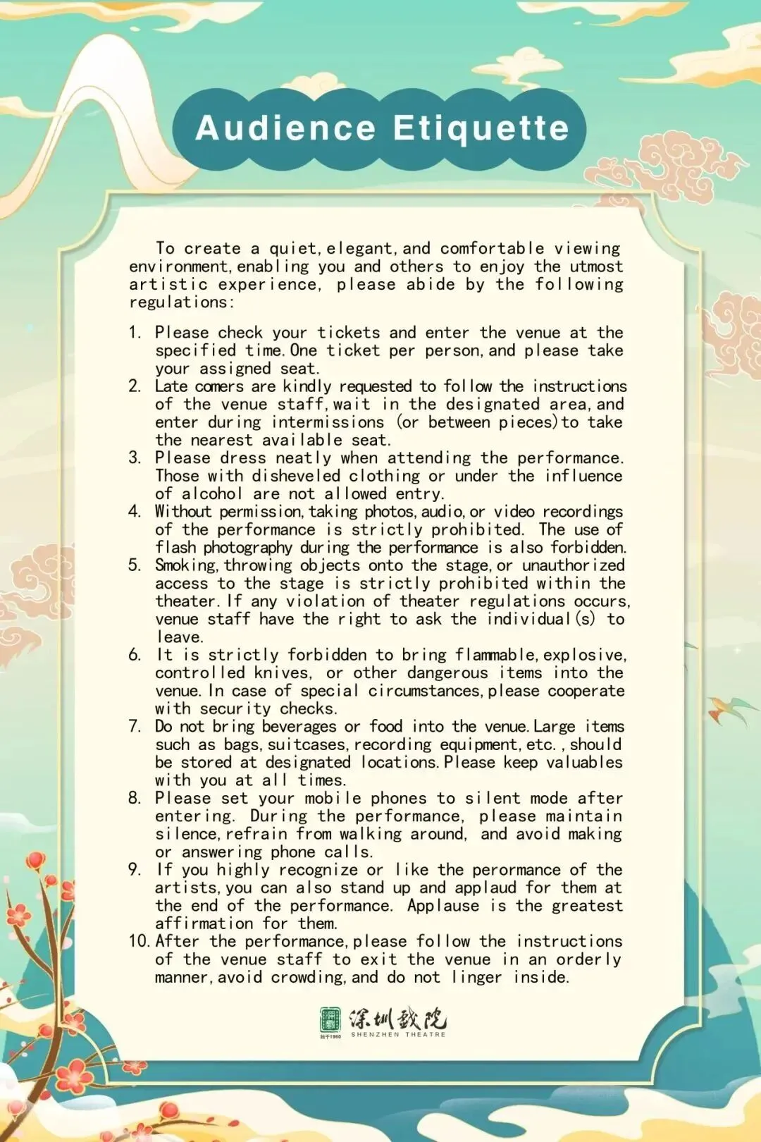 为保障观众的消费权益,购买门票的观众仅能凭票进入对应楼层,对号入座,请勿跨层入场。